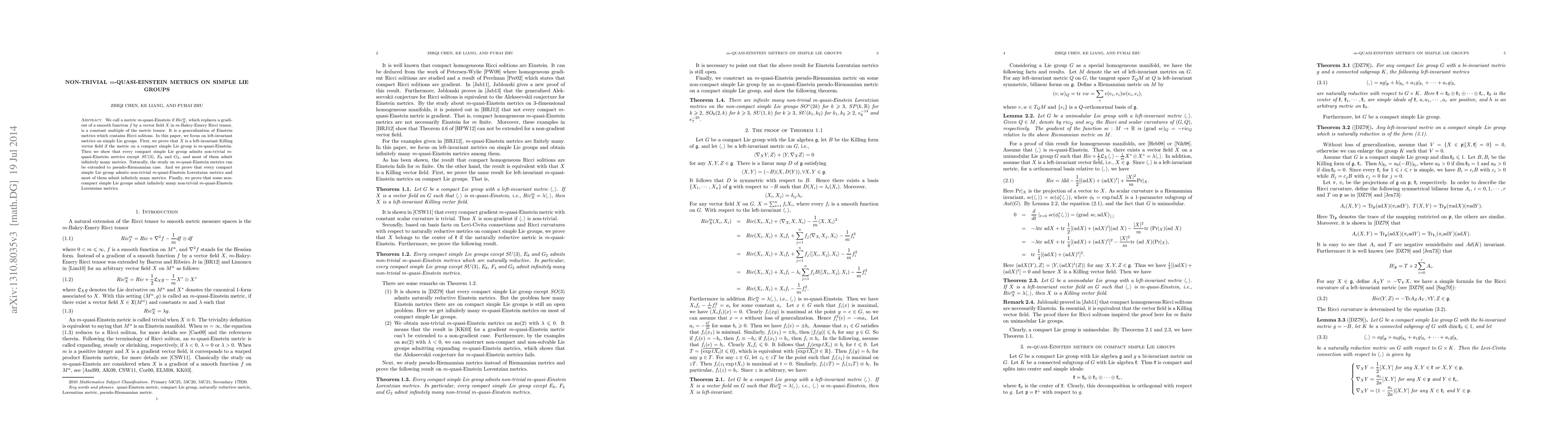 We call a metric $m$-quasi-Einstein if $Ric_X^m$, which replaces a gradient of a smooth function $f$ by a vector field $X$ in $m$-Bakry-Emery Ricci tensor, is a constant multiple of the metric tensor. It is a generalization of Einstein metrics which contains Ricci solitons. In this paper, we focus on left-invariant metrics on simple Lie groups. First, we prove that $X$ is a left-invariant Killing vector field if the metric on a compact simple Lie group is $m$-quasi-Einstein. Then we show that every compact simple Lie group admits non-trivial $m$-quasi-Einstein metrics except $SU(3)$, $E_8$ and $G_2$, and most of them admit infinitely many metrics. Naturally, the study on $m$-quasi-Einstein metrics can be extended to pseudo-Riemannian case. And we prove that every compact simple Lie group admits non-trivial $m$-quasi-Einstein Lorentzian metrics and most of them admit infinitely many metrics. Finally, we prove that some non-compact simple Lie groups admit infinitely many non-trivial $m$-quasi-Einstein Lorentzian metrics.