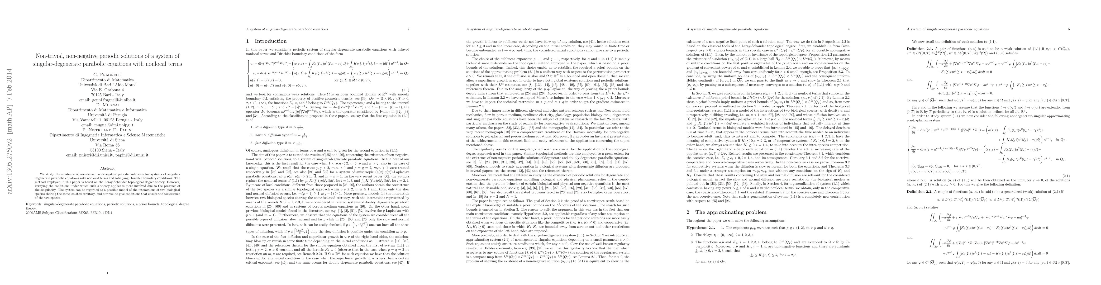 This paper uses Leray-Schauder topological degree theory to prove the existence of non-trivial, non-negative periodic solutions for systems of singular-degenerate parabolic equations with nonlocal terms, offering conditions for coexistence in biological species interactions.