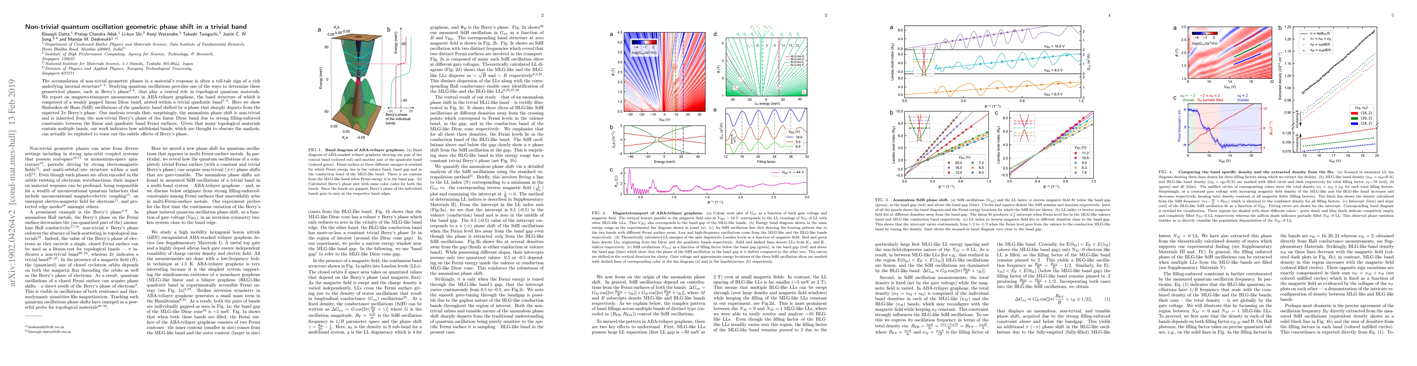 This paper reports on unexpected quantum oscillation geometric phase shifts in ABA-trilayer graphene, revealing that the quadratic band's Shubnikov-de Haas oscillations deviate from the standard 2$\pi$ Berry's phase, influenced by the non-trivial phase of the underlying linear Dirac band. This finding suggests that multiple bands in topological materials can reveal subtle Berry's phase effects rather than obscure them.