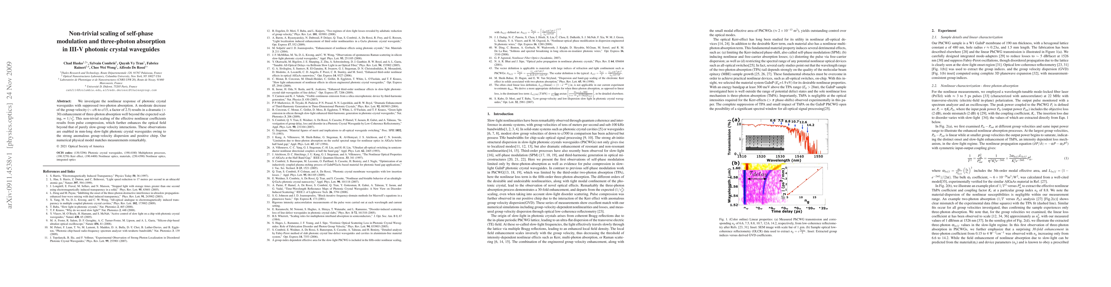We investigate the nonlinear response of photonic crystal waveguides with suppressed two-photon absorption. A moderate decrease of the group velocity (~ c/6 to c/15, a factor of 2.5) results in a dramatic (30x) enhancement of three-photon absorption well beyond the expected scaling, proportional to 1/(vg)^3. This non-trivial scaling of the effective nonlinear coefficients results from pulse compression, which further enhances the optical field beyond that of purely slow-group velocity interactions. These observations are enabled in mm-long slow-light photonic crystal waveguides owing to the strong anomalous group-velocity dispersion and positive chirp. Our numerical physical model matches measurements remarkably.