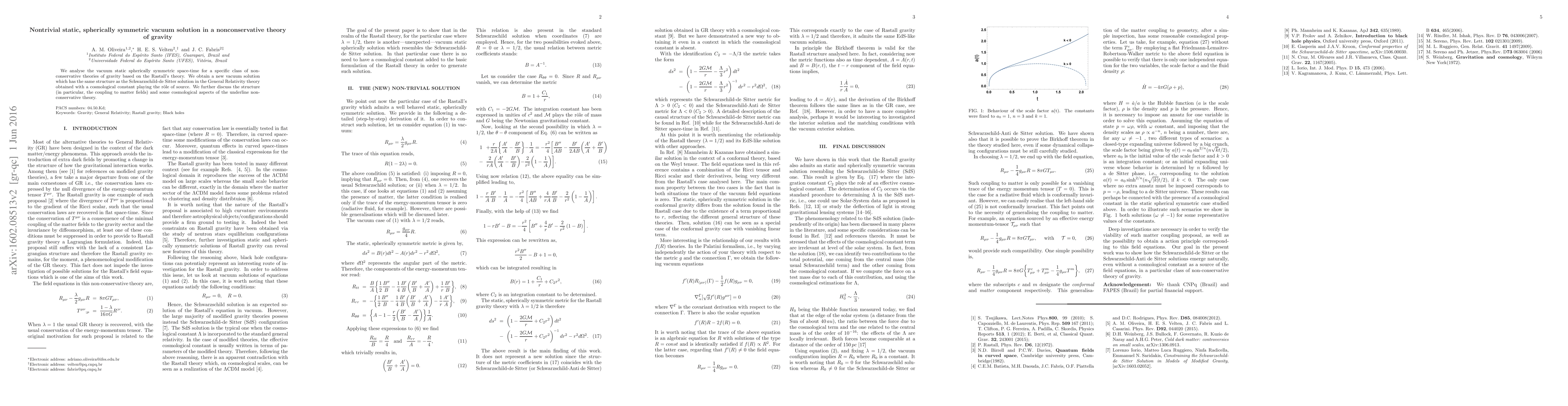 We analyse the vacuum static spherically symmetric space-time for a specific class of non-conservative theories of gravity based on the Rastall's theory. We obtain a new vacuum solution which has the same structure as the Schwarzschild-de Sitter solution in the General Relativity theory obtained with a cosmological constant playing the r\^ole of source. We further discuss the structure (in particular, the coupling to matter fields) and some cosmological aspects of the underline non-conservative theory