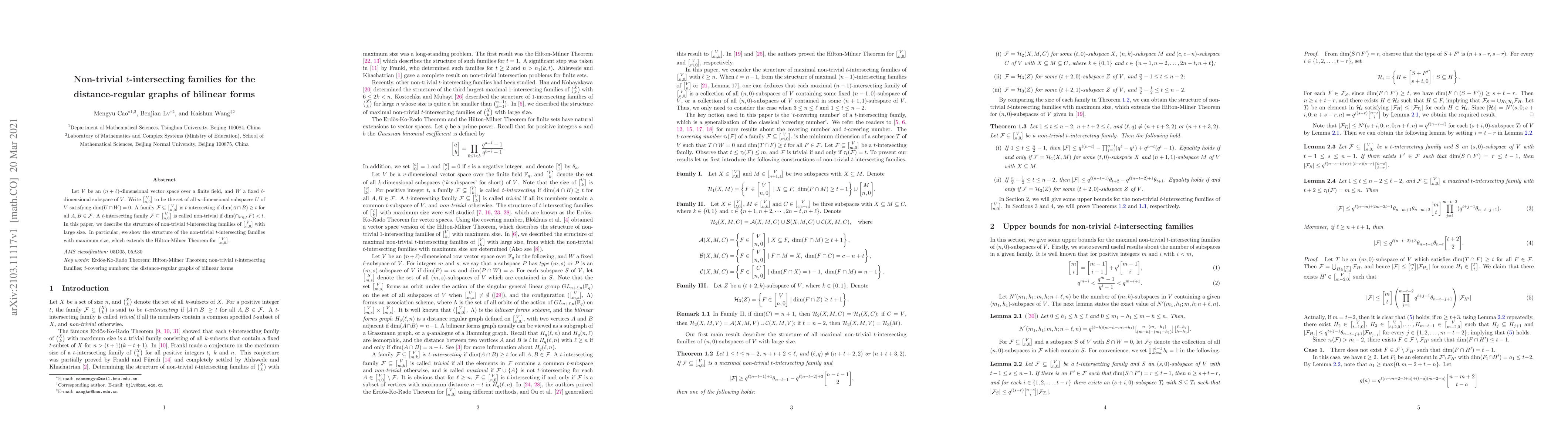 B)\geq t$ for all $A,B\in\mathcal{F}$. A $t$-intersecting family