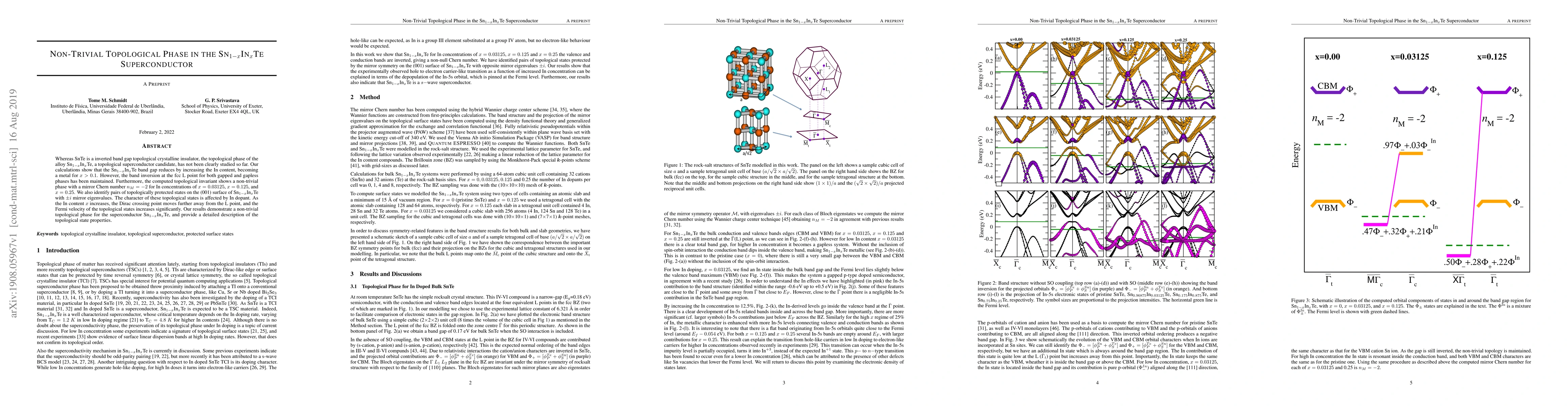This study reveals that the Sn_{1-x}In_xTe alloy maintains band inversion and exhibits a non-trivial topological phase with a mirror Chern number n_M = -2 for specific In concentrations, indicating its potential as a topological superconductor. The topological states are protected and their properties change with increasing In content.