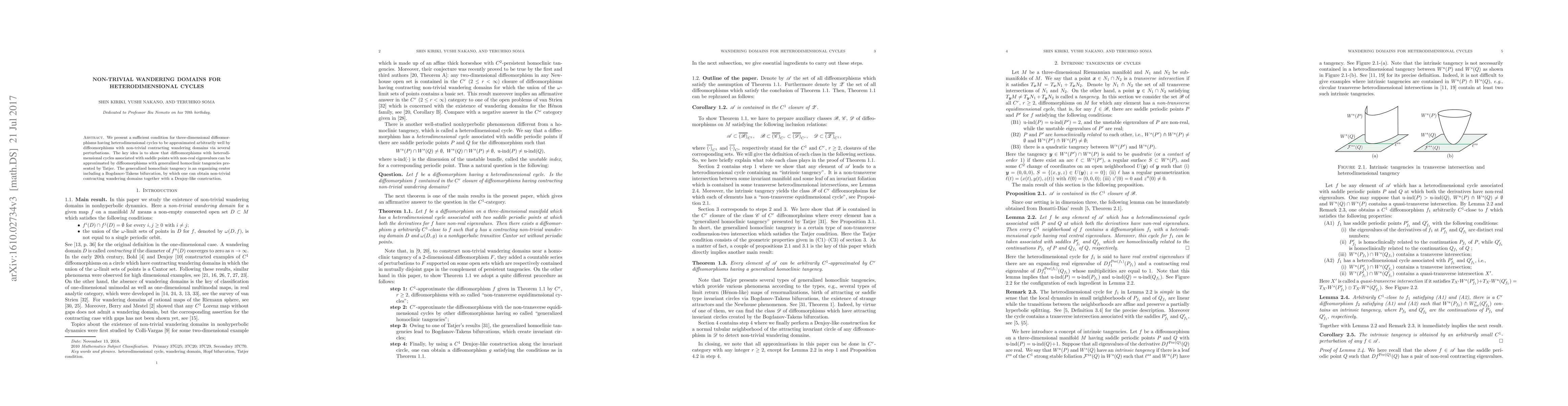 Researchers found a way to approximate complex three-dimensional diffeomorphisms with non-trivial contracting wandering domains through generalized homoclinic tangencies, providing a new approach to understanding heterodimensional cycles.
