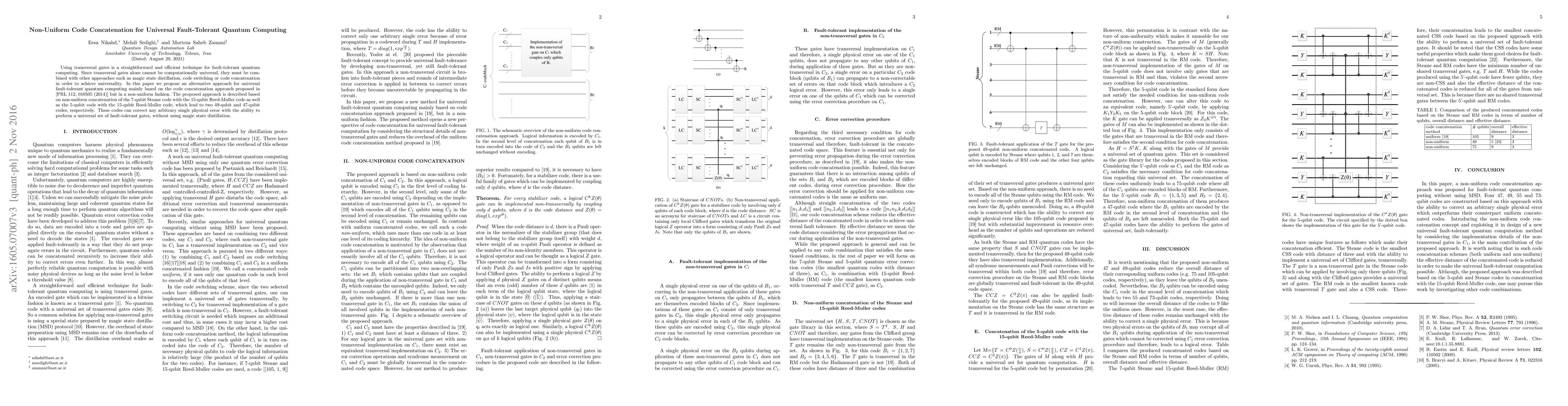 A novel non-uniform code concatenation method was proposed, enabling fault-tolerant quantum computing with reduced overhead and improved performance.