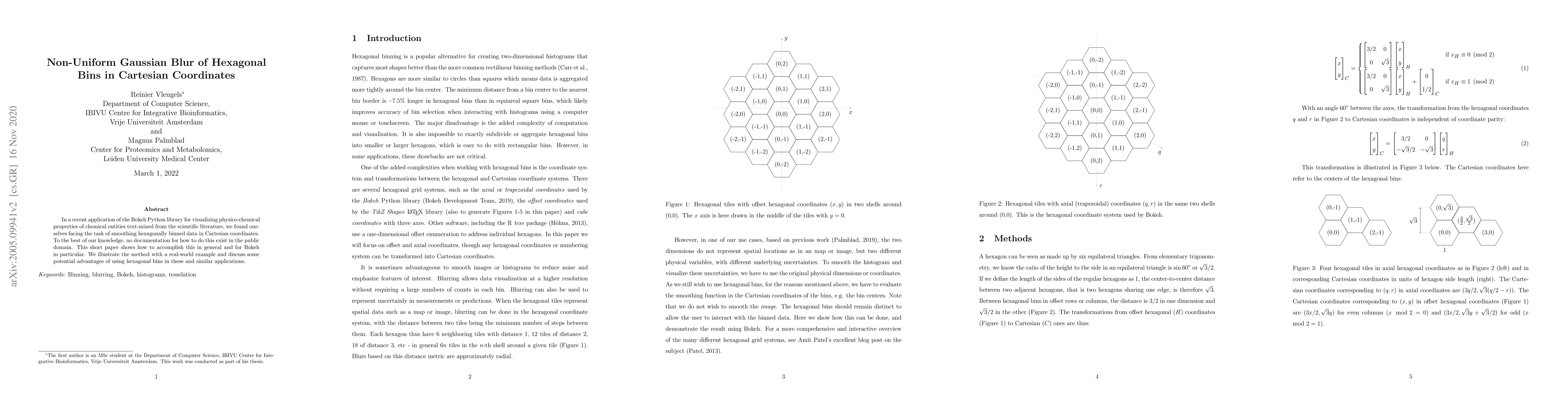 In a recent application of the Bokeh Python library for visualizing physico-chemical properties of chemical entities text-mined from the scientific literature, we found ourselves facing the task of smoothing hexagonally binned data in Cartesian coordinates. To the best of our knowledge, no documentation for how to do this exist in the public domain. This short paper shows how to accomplish this in general and for Bokeh in particular. We illustrate the method with a real-world example and discuss some potential advantages of using hexagonal bins in these and similar applications.