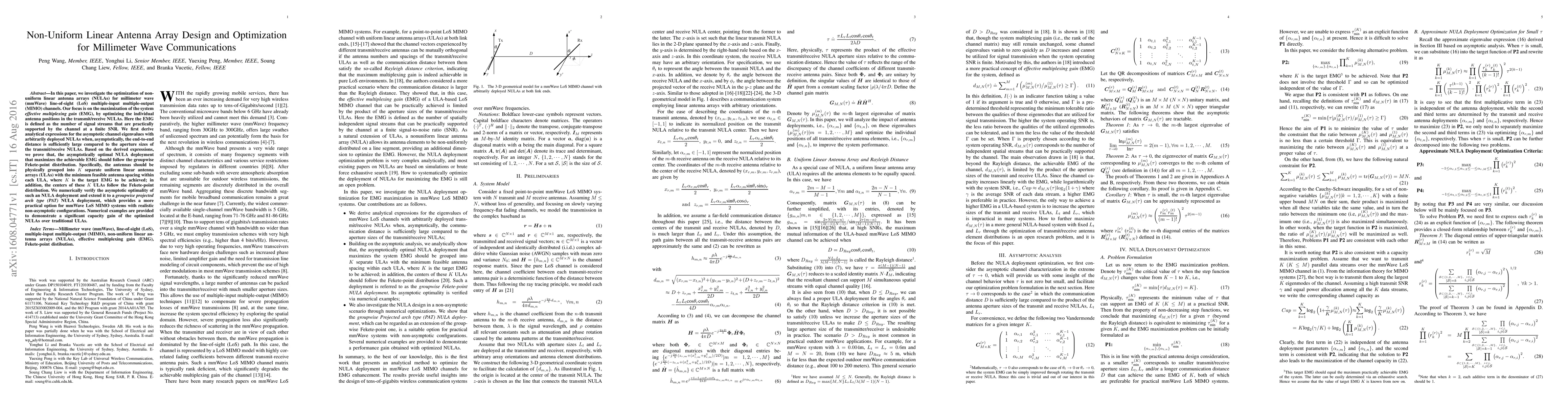 Researchers designed an optimized non-uniform linear antenna array for millimeter wave communications, achieving a significant capacity gain over traditional arrays.
