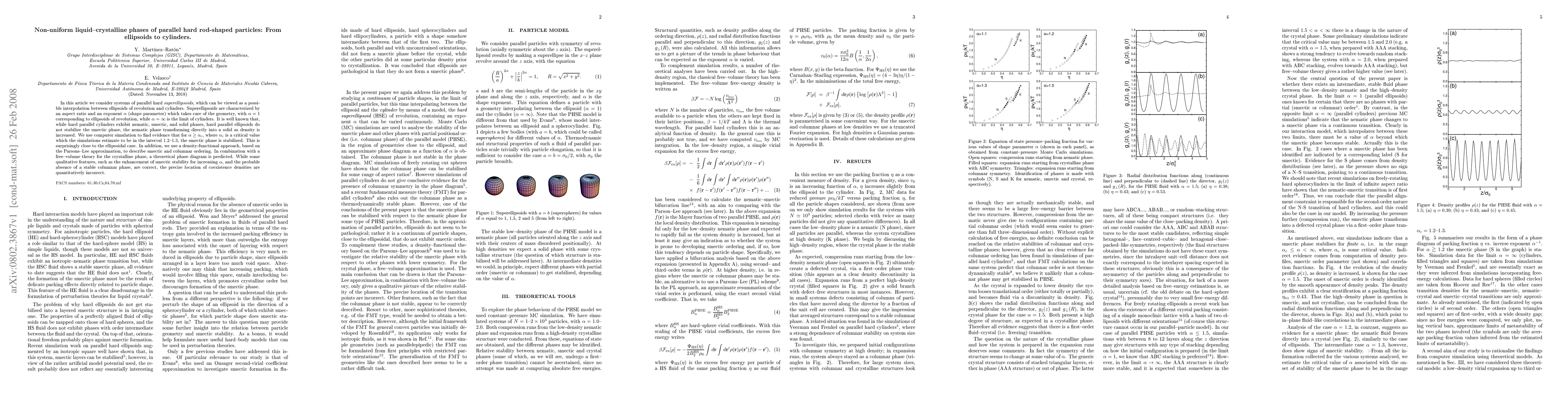 This paper explores the liquid-crystalline phases of parallel hard superellipsoids, which interpolate between ellipsoids and cylinders, using simulations and density-functional theory. It finds that for a shape parameter $\alpha$ greater than a critical value (1.2-1.3), the smectic phase is stabilized, contrary to the direct nematic-to-solid transition in ellipsoids.