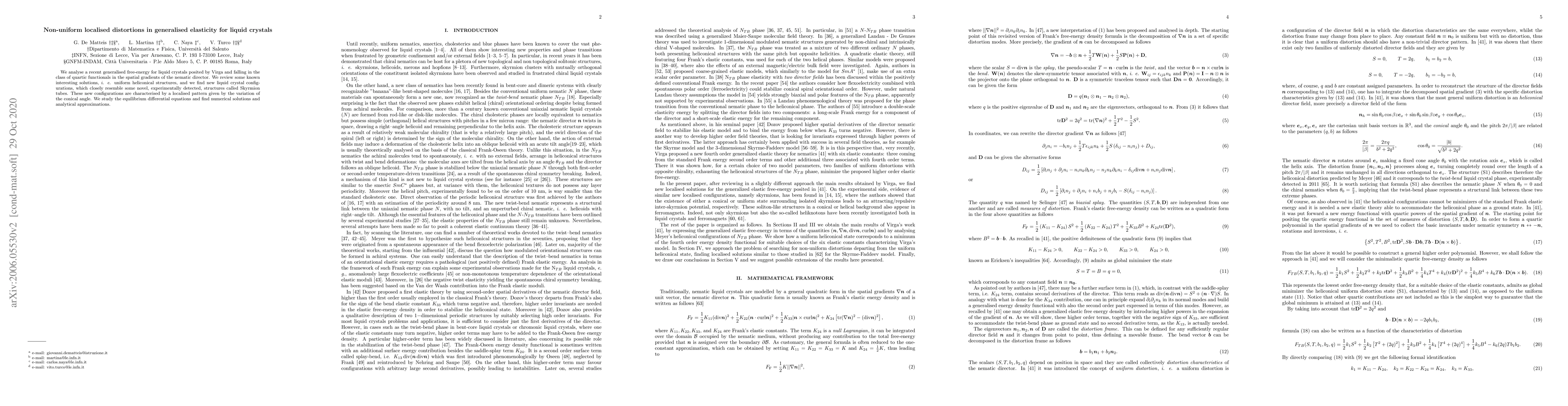 We analyse a recent generalised free-energy for liquid crystals posited by Virga and falling in the class of quartic functionals in the spatial gradients of the nematic director. We review some known interesting solutions, i. e., uniform heliconical structures, and we find new liquid crystal configurations, which closely resemble some novel, experimentally detected, structures called Skyrmion tubes. These new configurations are characterised by a localised pattern given by the variation of the conical angle. We study the equilibrium differential equations and find numerical solutions and analytical approximations.