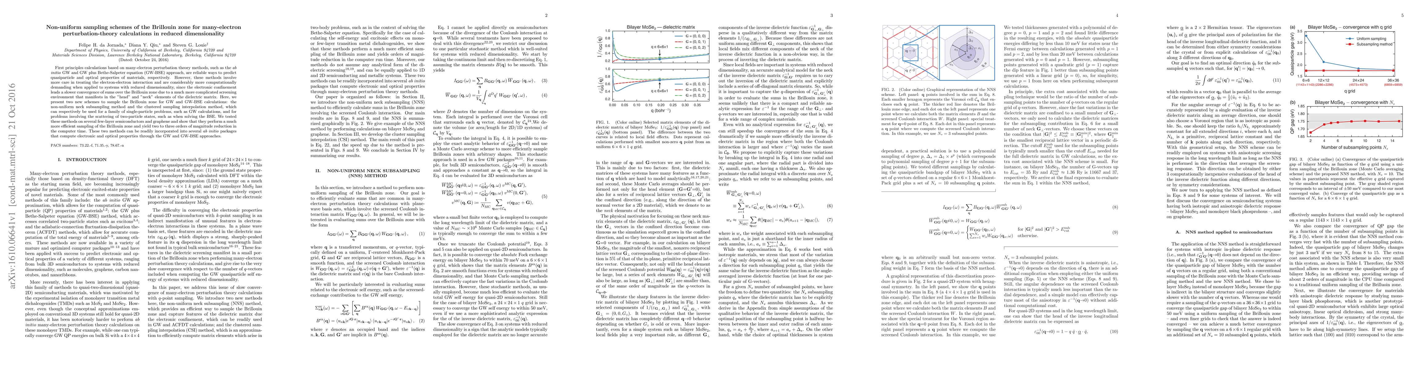 This paper introduces two new non-uniform sampling schemes for the Brillouin zone in many-electron perturbation theory calculations, specifically for the GW and GW-BSE methods. These schemes—neck subsampling and clustered sampling interpolation—significantly reduce computational demands and improve efficiency in systems with reduced dimensionality.