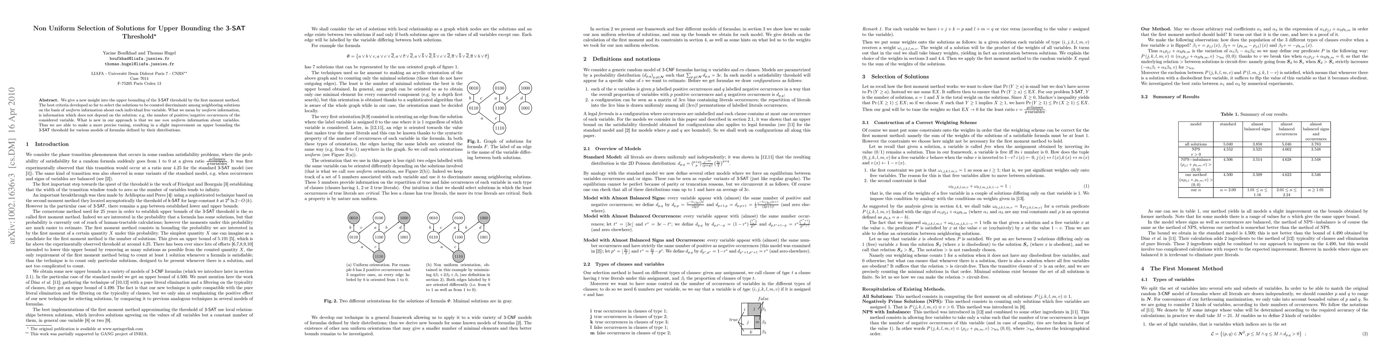 We give a new insight into the upper bounding of the 3-SAT threshold by the first moment method. The best criteria developed so far to select the solutions to be counted discriminate among neighboring solutions on the basis of uniform information about each individual free variable. What we mean by uniform information, is information which does not depend on the solution: e.g. the number of positive/negative occurrences of the considered variable. What is new in our approach is that we use non uniform information about variables. Thus we are able to make a more precise tuning, resulting in a slight improvement on upper bounding the 3-SAT threshold for various models of formulas defined by their distributions.