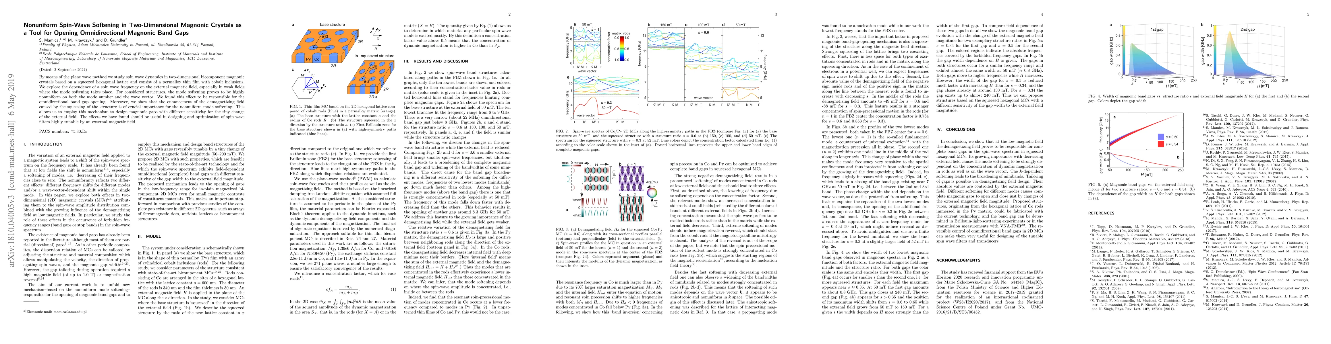 This study investigates spin wave dynamics in 2D magnonic crystals with a squeezed hexagonal lattice, revealing non-uniform spin wave softening that leads to omnidirectional band gap opening. The non-uniform softening, influenced by the demagnetizing field, enables the design of tunable spin wave filters responsive to small external magnetic fields.