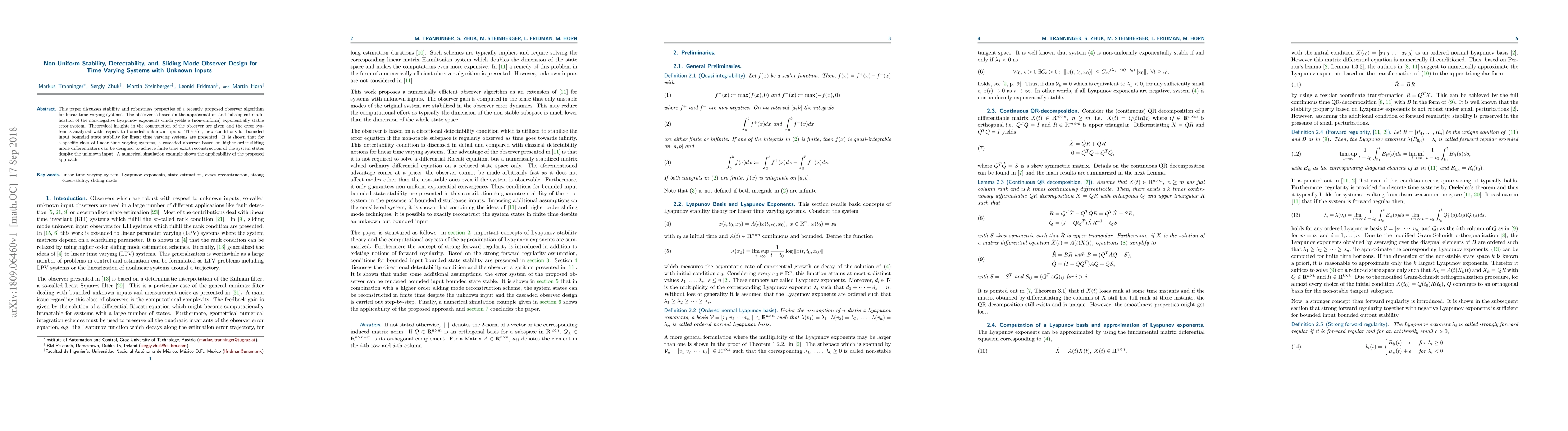 This paper proposes an observer algorithm for linear time-varying systems that achieves non-uniform stability and robustness against unknown inputs, utilizing modified non-negative Lyapunov exponents. The method ensures finite time exact state reconstruction and presents new stability conditions for such systems.