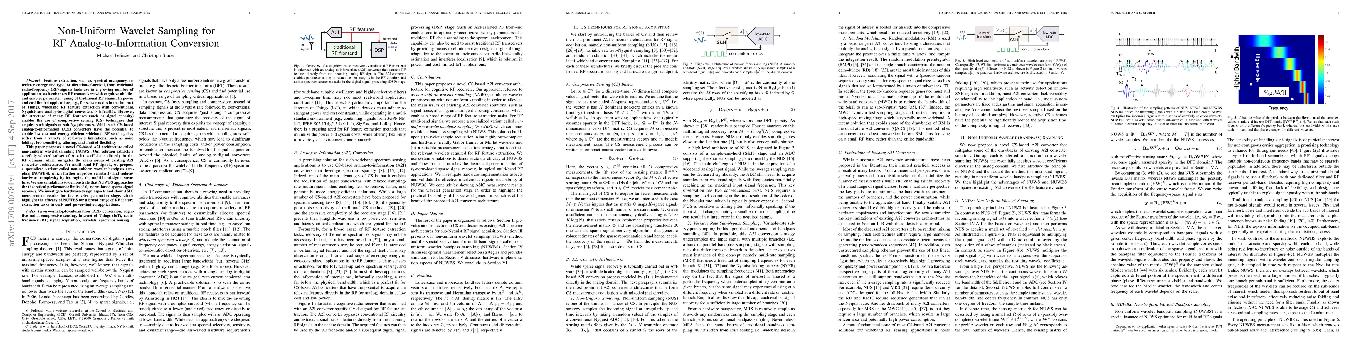 A new approach to RF analog-to-information conversion called non-uniform wavelet sampling (NUWS) is proposed to overcome limitations of existing compressive sensing-based methods, offering improved sensitivity and reduced hardware complexity for cost- and power-limited applications.