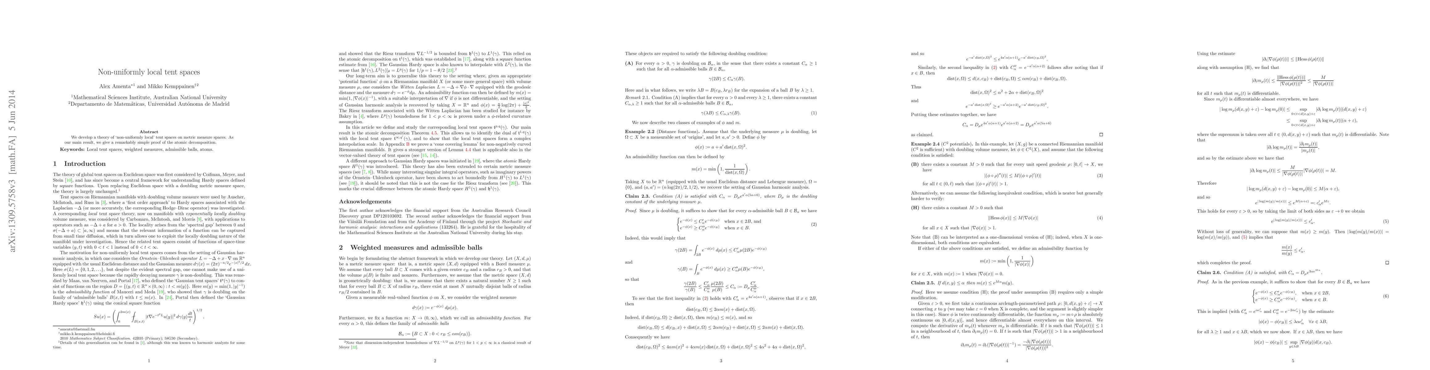 Summary: This paper introduces the concept of non-uniformly local tent spaces on metric measure spaces and provides a straightforward proof for the atomic decomposition, contributing to the theory of function spaces on such spaces.