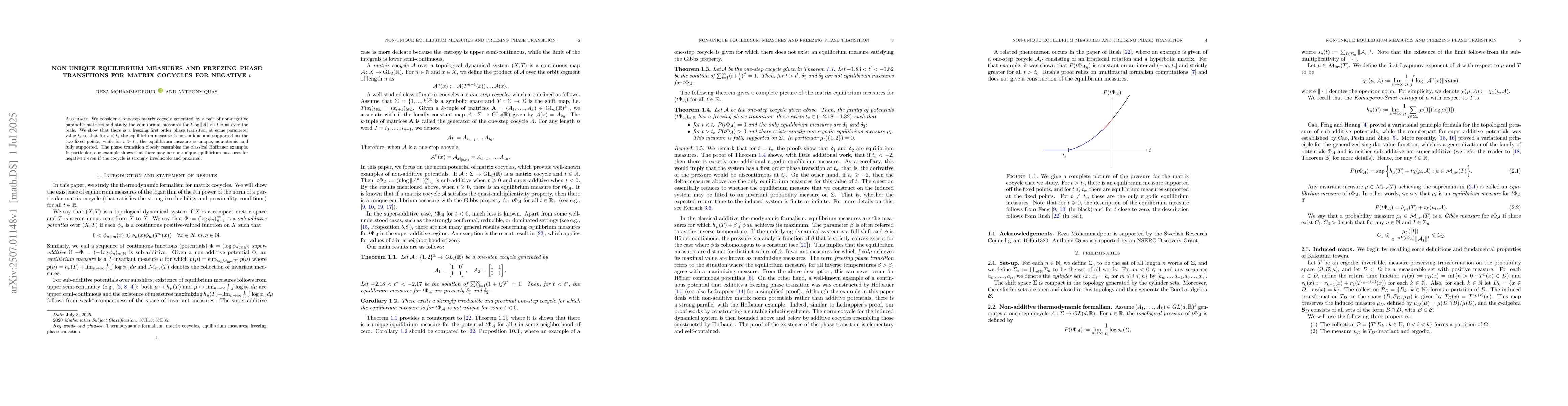 parabolic matrices and study the equilibrium measures for $t\log \|\mathcal