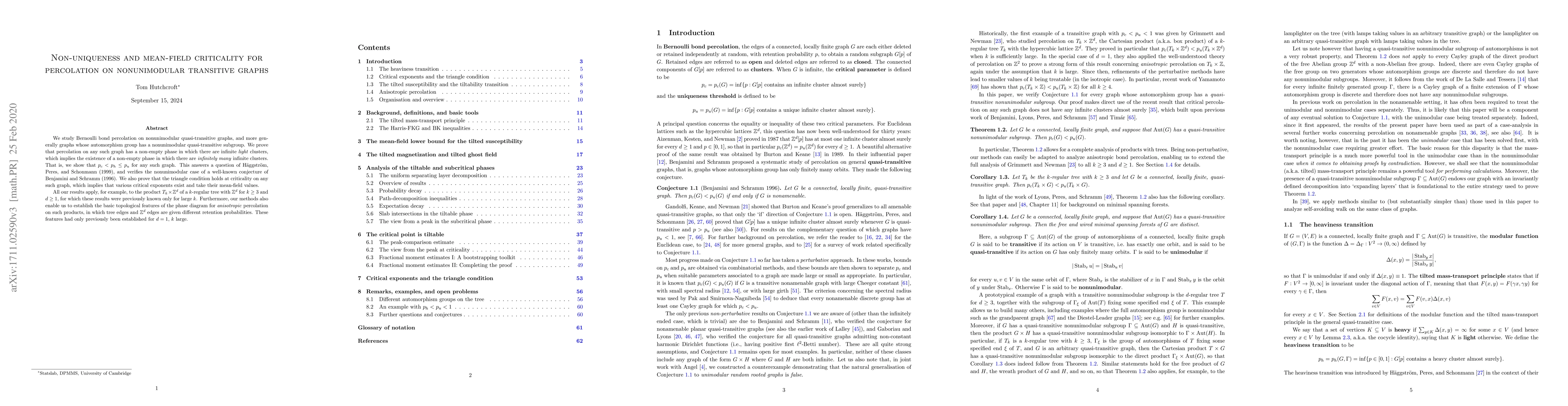 We study Bernoulli bond percolation on nonunimodular quasi-transitive graphs,