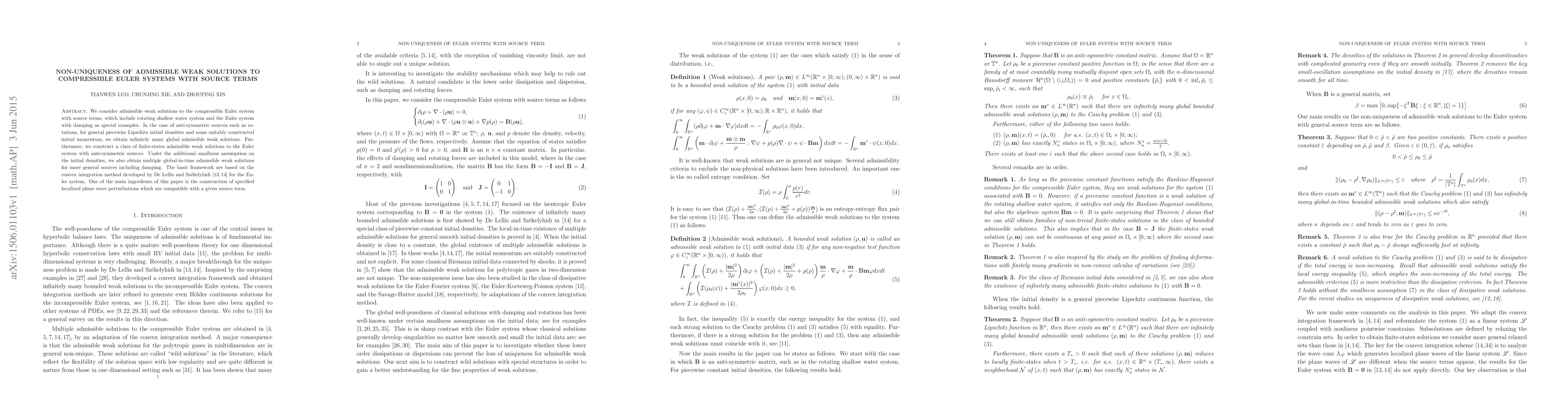 We consider admissible weak solutions to the compressible Euler system with source terms, which include rotating shallow water system and the Euler system with damping as special examples. In the case of anti-symmetric sources such as rotations, for general piecewise Lipschitz initial densities and some suitably constructed initial momentum, we obtain infinitely many global admissible weak solutions. Furthermore, we construct a class of finite-states admissible weak solutions to the Euler system with anti-symmetric sources. Under the additional smallness assumption on the initial densities, we also obtain multiple global-in-time admissible weak solutions for more general sources including damping. The basic framework are based on the convex integration method developed by De~Lellis and Sz\'{e}kelyhidi \cite{dLSz1,dLSz2} for the Euler system. One of the main ingredients of this paper is the construction of specified localized plane wave perturbations which are compatible with a given source term.