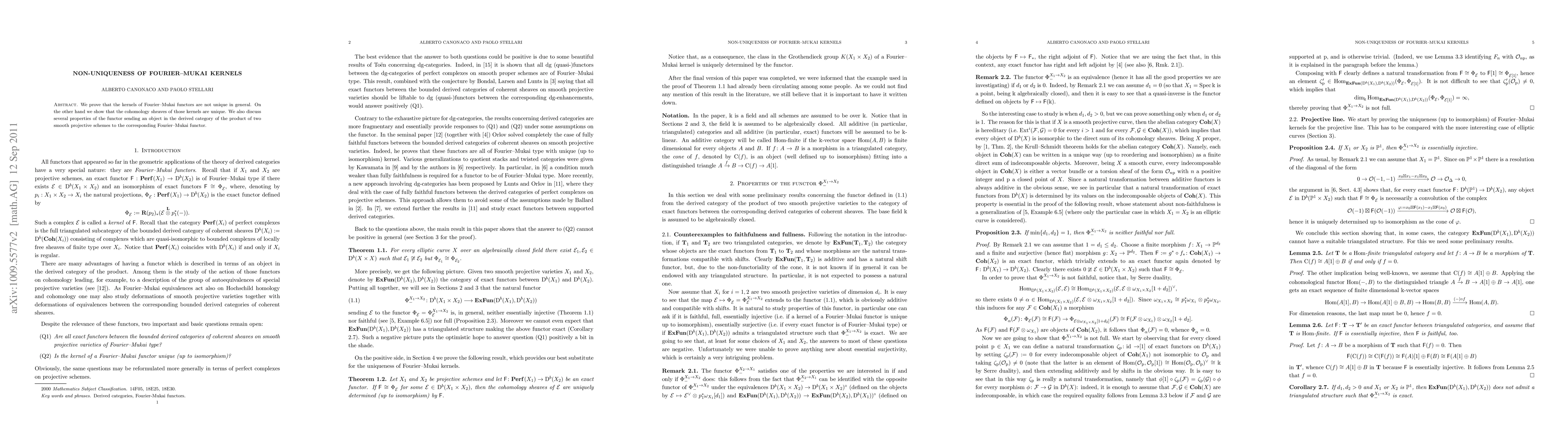 This paper demonstrates that Fourier-Mukai kernels are generally non-unique, though their cohomology sheaves remain consistent. It further explores properties of the functor that maps objects in the derived category of the product of two smooth projective schemes to corresponding Fourier-Mukai functors.