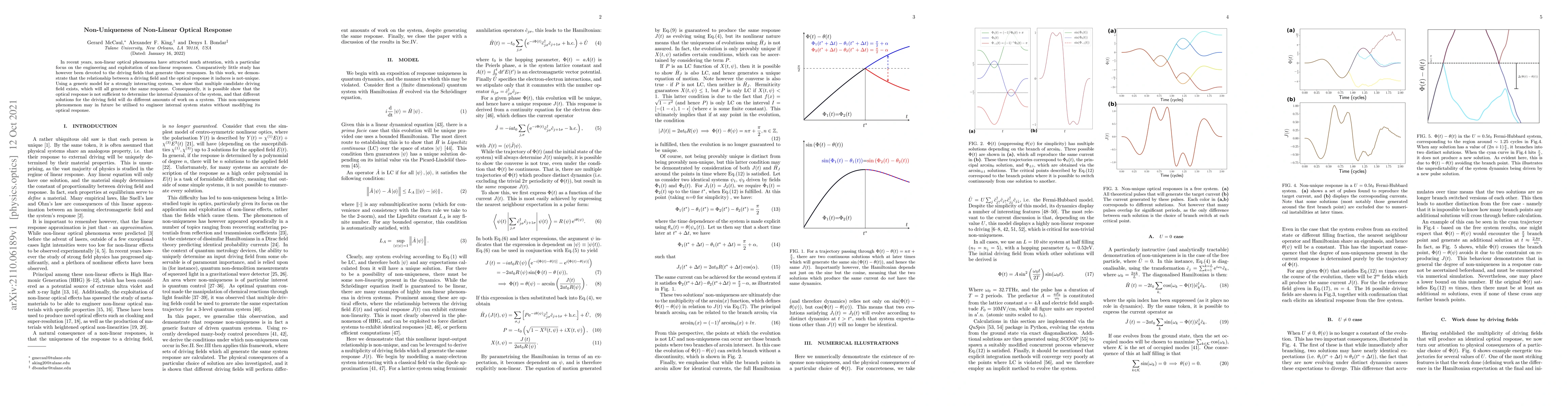 Research shows that multiple driving fields can generate the same non-linear optical response in a system, making it possible to engineer internal states without changing the response, highlighting the non-uniqueness of these responses.