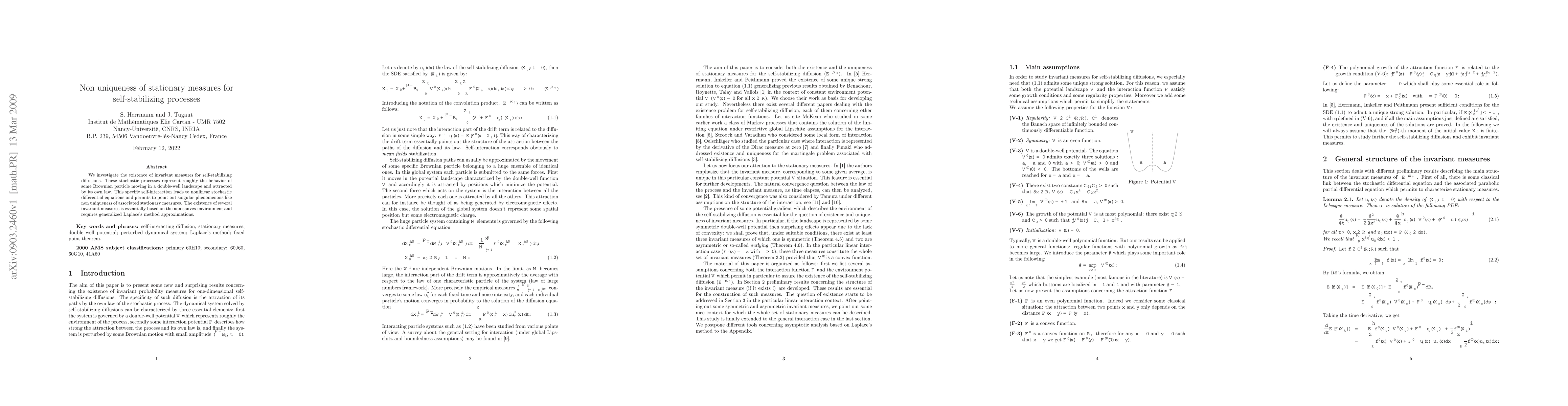 We investigate the existence of invariant measures for self-stabilizing diffusions. These stochastic processes represent roughly the behavior of some Brownian particle moving in a double-well landscape and attracted by its own law. This specific self-interaction leads to nonlinear stochastic differential equations and permits to point out singular phenomenons like non uniqueness of associated stationary measures. The existence of several invariant measures is essentially based on the non convex environment and requires generalized Laplace's method approximations.