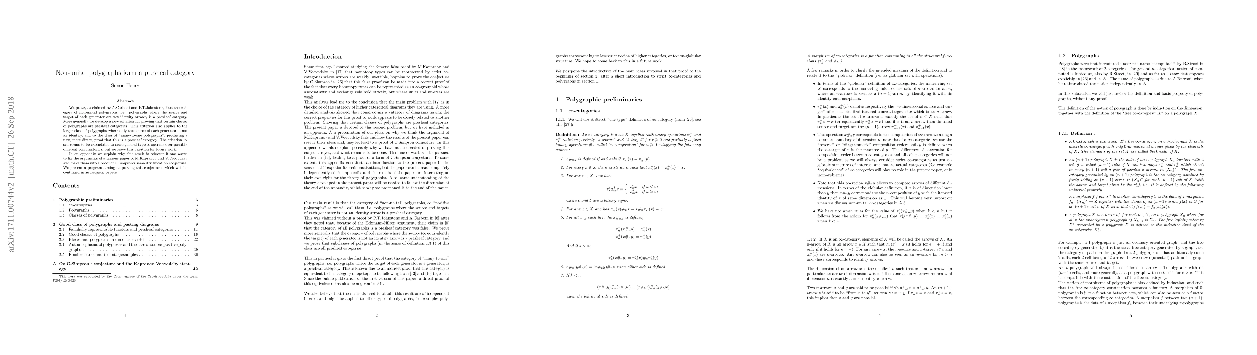 This paper proves that the category of non-unital polygraphs is a presheaf category, establishing a new criterion applicable to various classes of polygraphs. The authors propose a program to extend this result and resolve C. Simpson's semi-strictification conjecture.