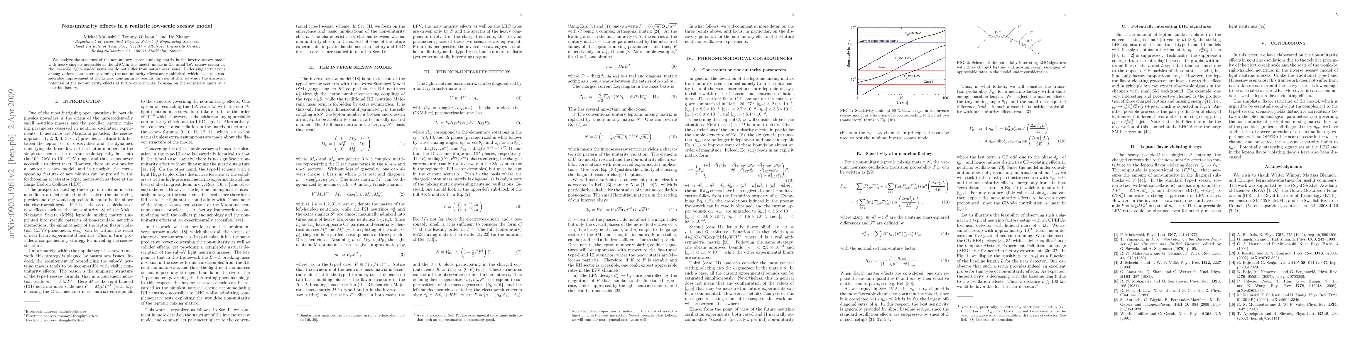This paper investigates non-unitarity in the leptonic mixing matrix within a low-scale inverse seesaw model featuring accessible heavy singlets at the LHC. It establishes correlations among parameters that enhance non-unitarity bounds and explores the model's discovery potential at future neutrino experiments, particularly a neutrino factory.