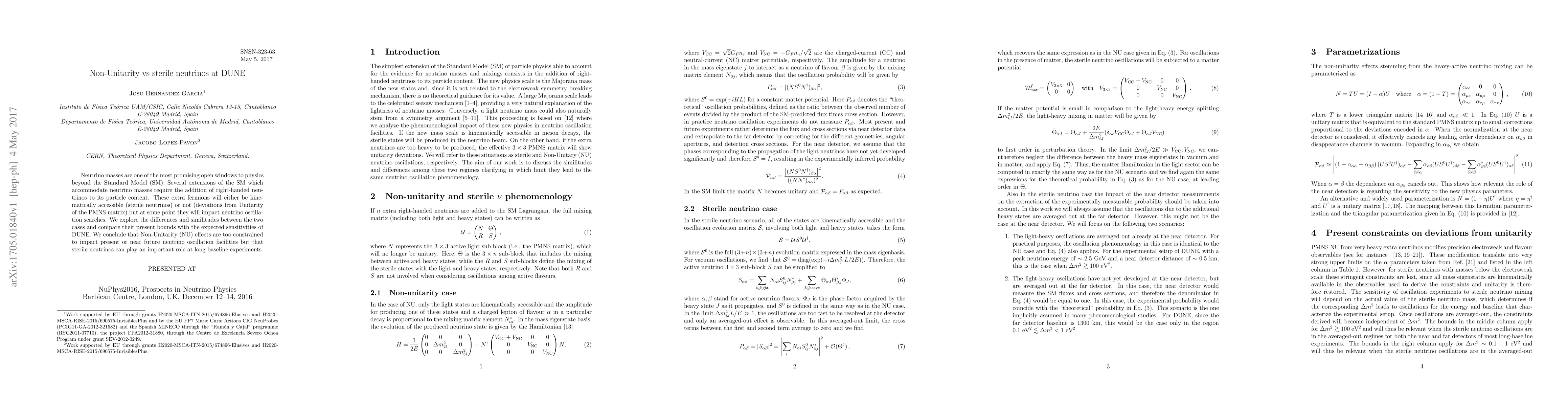 This paper investigates the implications of non-unitarity in the PMNS matrix and sterile neutrinos in the context of neutrino oscillation experiments, particularly DUNE. It finds that while non-unitarity effects are too constrained to affect current or near-future results, sterile neutrinos remain a significant possibility for long-baseline experiments.