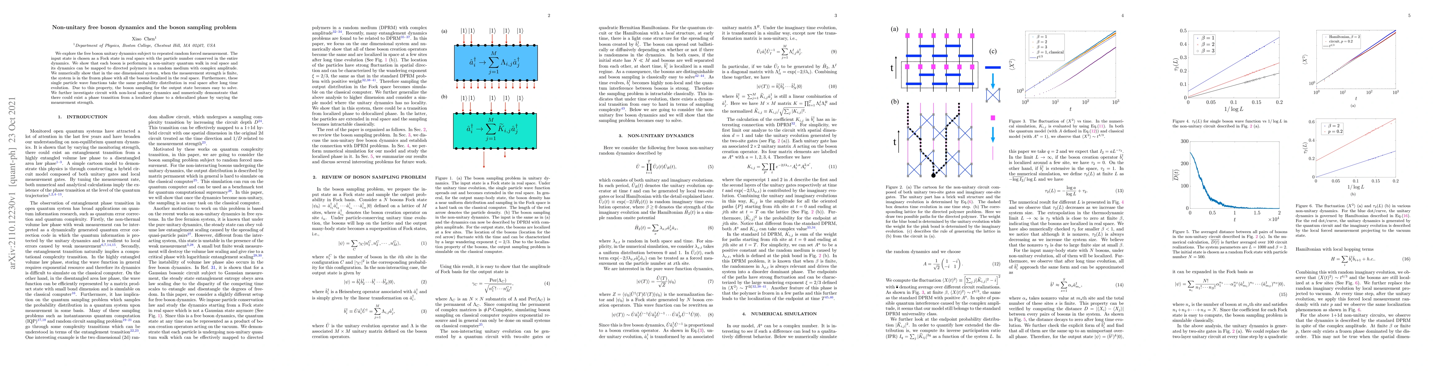 We explore the free boson unitary dynamics subject to repeated random forced measurement. The input state is chosen as a Fock state in real space with the particle number conserved in the entire dynamics. We show that each boson is performing a non-unitary quantum walk in real space and its dynamics can be mapped to directed polymers in a random medium with complex amplitude. We numerically show that in the one dimensional system, when the measurement strength is finite, the system is in the frozen phase with all the bosons localized in the real space. Furthermore, these single particle wave functions take the same probability distribution in real space after long time evolution. Due to this property, the boson sampling for the output state becomes easy to solve. We further investigate circuit with non-local unitary dynamics and numerically demonstrate that there could exist a phase transition from a localized phase to a delocalized phase by varying the measurement strength.