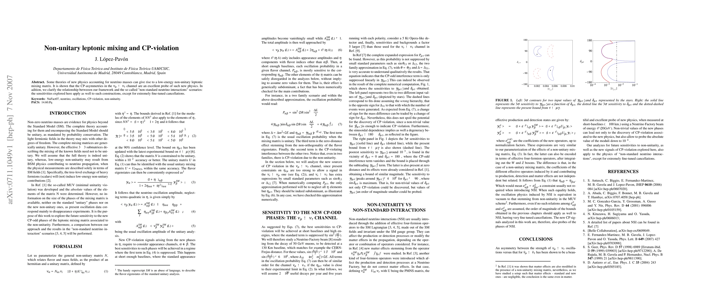 Some theories of new physics accounting for neutrino masses can give rise to a low-energy non-unitary leptonic mixing matrix. It is shown that the CP-asymmetries in the $\nu_\mu\to \nu_\tau$ channel are an excellent probe of such new physics. In adition, we clarify the relationship betweeen our framework and the so called "non-standard neutrino interactions" scenarios: the sensitivities explored here apply as well to such constructions, except for extremely fine-tuned cancellations.