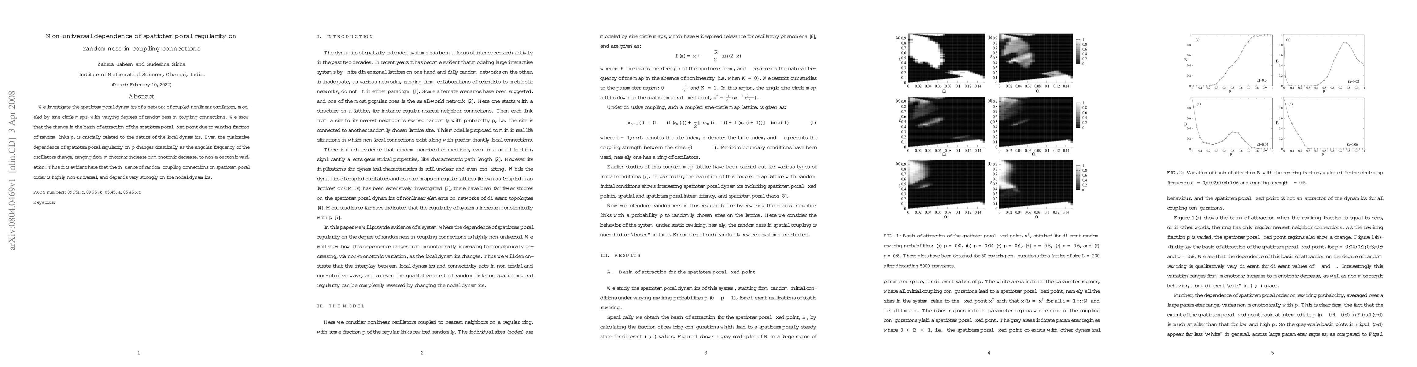 This study investigates how random coupling connections affect spatiotemporal regularity in a network of nonlinear oscillators. It shows that the impact of randomness is highly non-universal and depends strongly on the local dynamics of the system.