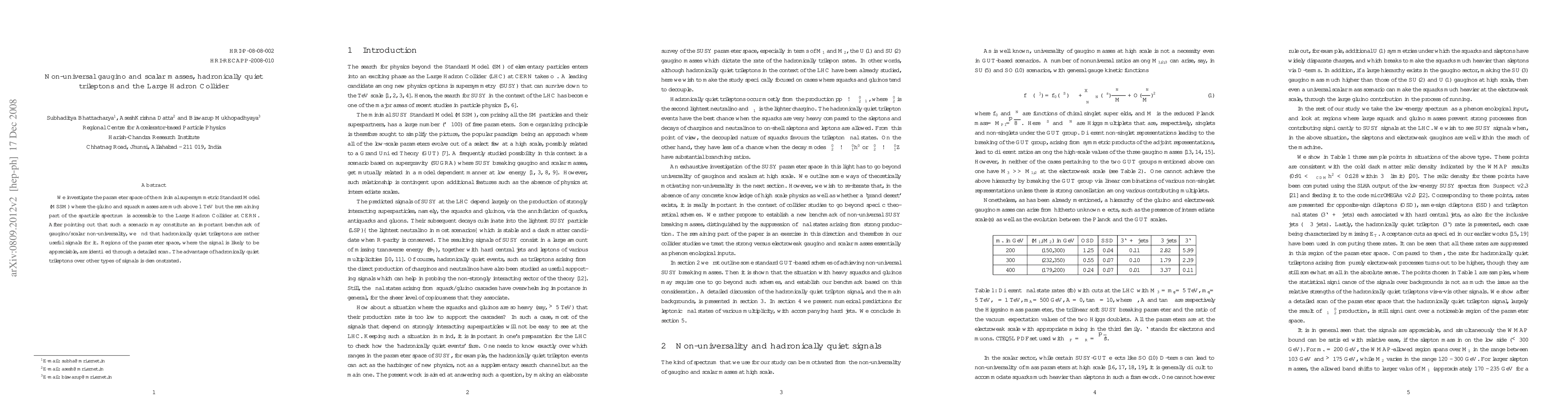 This paper explores the minimal supersymmetric Standard Model (MSSM) with high gluino and squark masses but accessible lighter sparticles at the LHC, highlighting non-universal gaugino/scalar masses. Hadronically quiet trilepton signals are identified as effective indicators of this scenario.