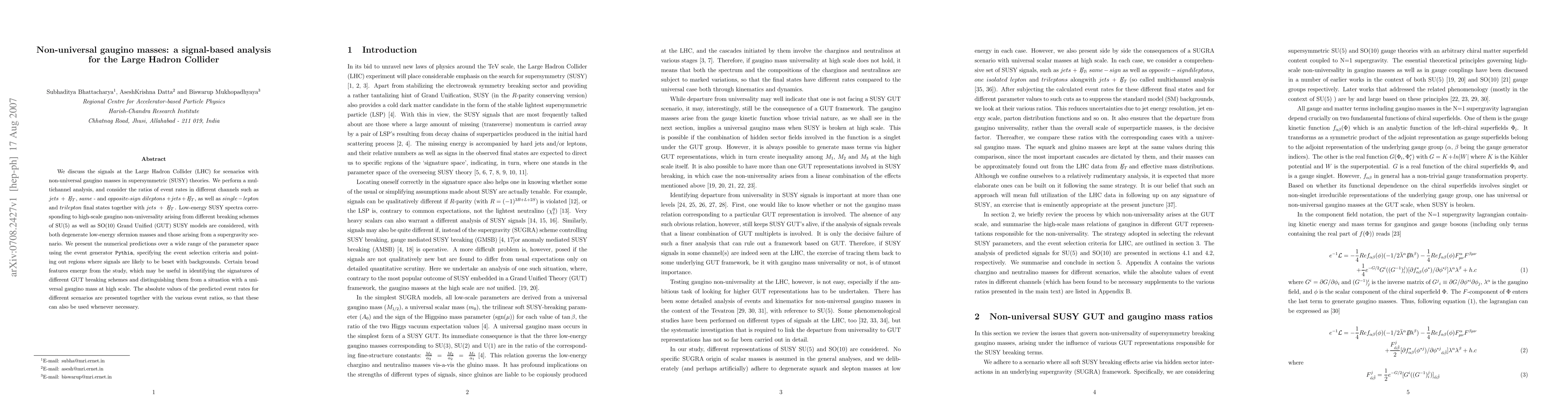 This paper analyzes LHC signals for non-universal gaugino masses in SUSY theories, employing a multichannel approach to various final states. It identifies distinct features that may help distinguish different GUT breaking schemes from universal gaugino mass scenarios.