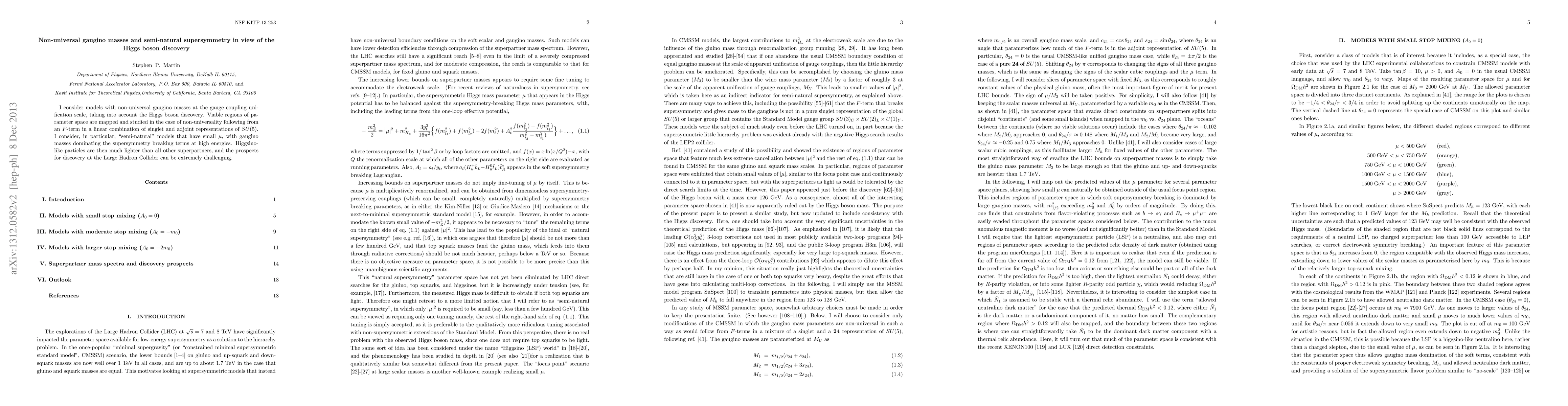 I consider models with non-universal gaugino masses at the gauge coupling unification scale, taking into account the Higgs boson discovery. Viable regions of parameter space are mapped and studied in the case of non-universality following from an F-term in a linear combination of singlet and adjoint representations of SU(5). I consider, in particular, "semi-natural" models that have small \mu, with gaugino masses dominating the supersymmetry breaking terms at high energies. Higgsino-like particles are then much lighter than all other superpartners, and the prospects for discovery at the Large Hadron Collider can be extremely challenging.