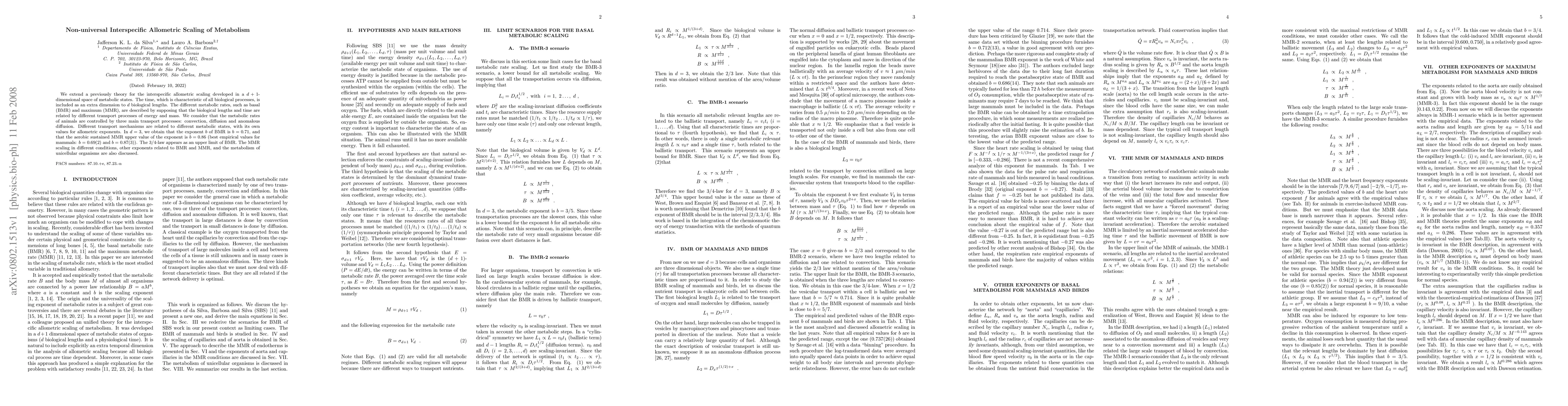We extend a previously theory for the interspecific allometric scaling developed in a $d+1$-dimensional space of metabolic states. The time, which is characteristic of all biological processes, is included as an extra dimension to $d$ biological lengths. The different metabolic rates, such as basal (BMR) and maximum (MMR), are described by supposing that the biological lengths and time are related by different transport processes of energy and mass. We consider that the metabolic rates of animals are controlled by three main transport processes: convection, diffusion and anomalous diffusion. Different transport mechanisms are related to different metabolic states, with its own values for allometric exponents. In $d=3$, we obtain that the exponent $b$ of BMR is $b=0.71$, and that the aerobic sustained MMR upper value of the exponent is $b=0.86$ (best empirical values for mammals: $b=0.69(2)$ and $b=0.87(3)$). The 3/4-law appears as an upper limit of BMR. The MMR scaling in different conditions, other exponents related to BMR and MMR, and the metabolism of unicellular organisms are also discussed.