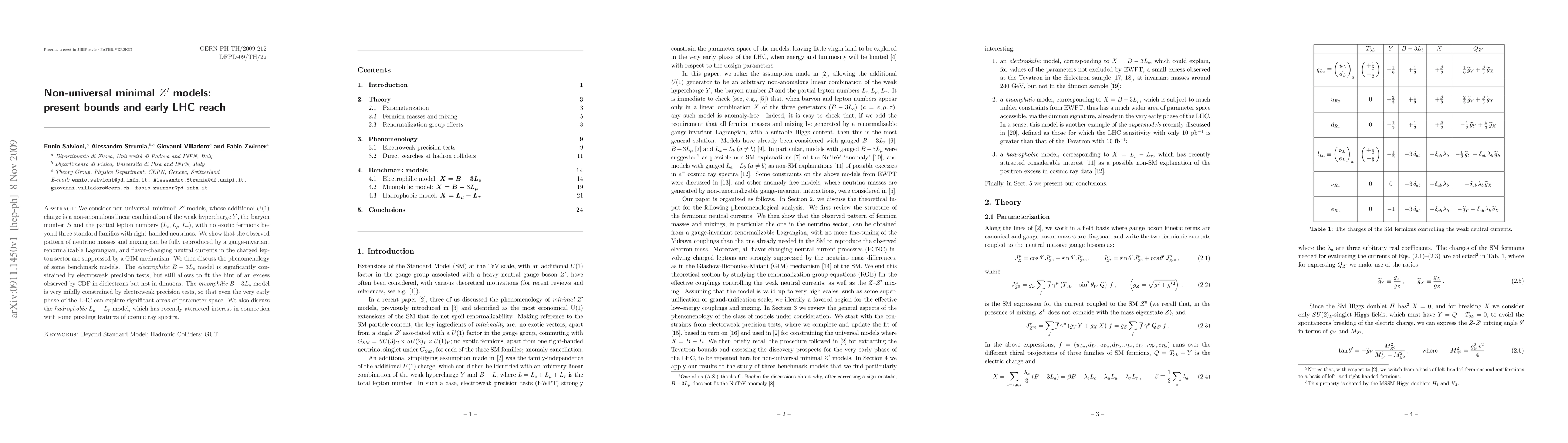 We consider non-universal 'minimal' Z' models, whose additional U(1) charge is a non-anomalous linear combination of the weak hypercharge Y, the baryon number B and the partial lepton numbers (L_e, L_mu, L_tau), with no exotic fermions beyond three standard families with right-handed neutrinos. We show that the observed pattern of neutrino masses and mixing can be fully reproduced by a gauge-invariant renormalizable Lagrangian, and flavor-changing neutral currents in the charged lepton sector are suppressed by a GIM mechanism. We then discuss the phenomenology of some benchmark models. The electrophilic B-3L_e model is significantly constrained by electroweak precision tests, but still allows to fit the hint of an excess observed by CDF in dielectrons but not in dimuons. The muonphilic B-3L_mu model is very mildly constrained by electroweak precision tests, so that even the very early phase of the LHC can explore significant areas of parameter space. We also discuss the hadrophobic L_mu-L_tau model, which has recently attracted interest in connection with some puzzling features of cosmic ray spectra.