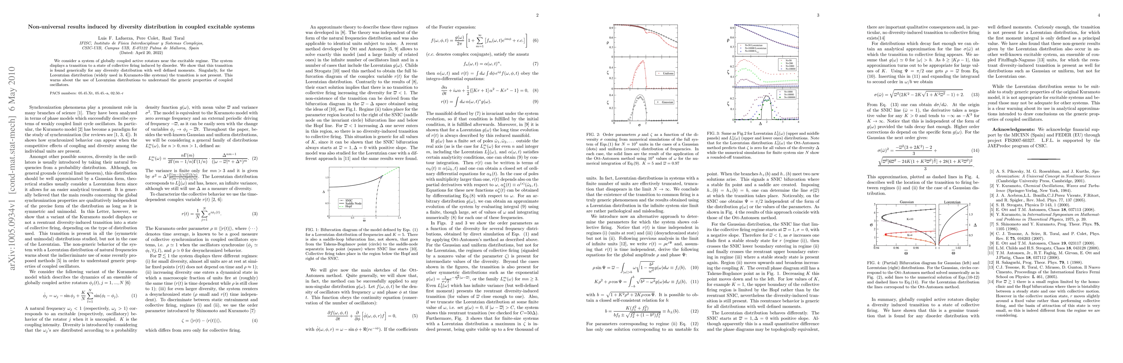 Summary: This study reveals that globally coupled active rotators near the excitable regime transition to collective firing due to diversity distribution, except for Lorentzian distributions, which fail to induce this transition, cautioning against their use in understanding general properties of coupled oscillators.