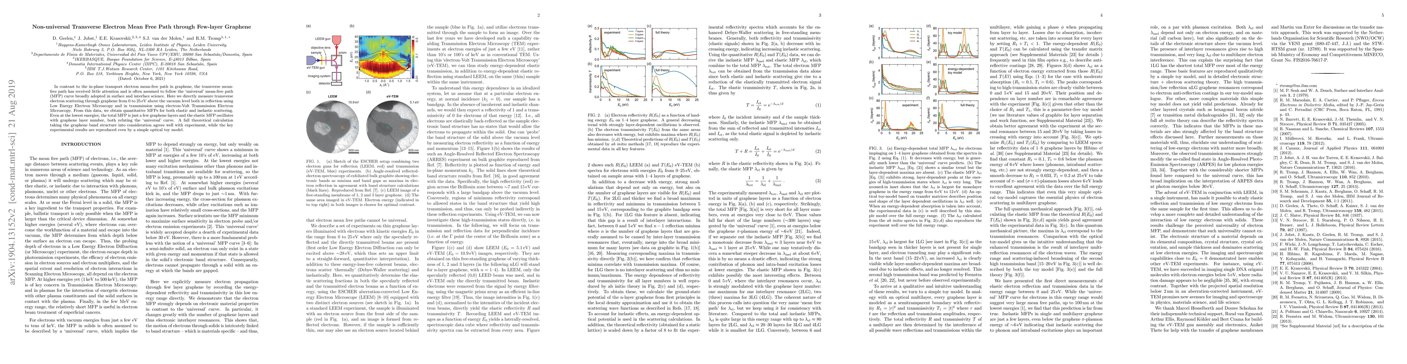 This paper measures the transverse electron mean-free path in few-layer graphene, finding it significantly deviates from the assumed 'universal' curve. Experimental results from Low Energy Electron Microscopy and electron-Volt Transmission Electron Microscopy reveal that the transverse MFP is just a few layers thick and oscillates with layer number, supported by theoretical calculations considering graphene's band structure.