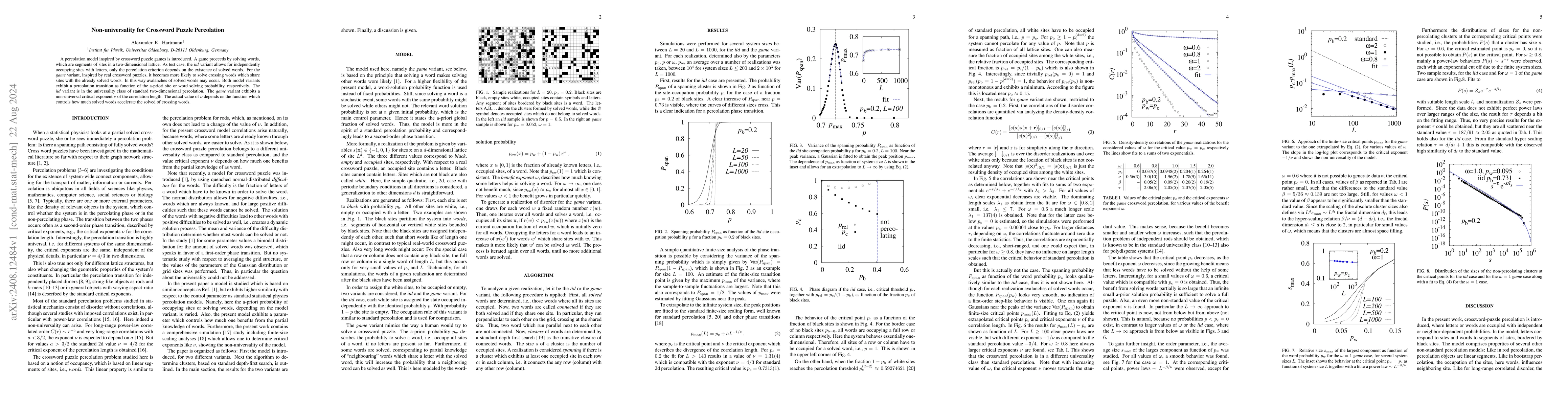 This paper introduces a percolation model based on crossword puzzles, showing two variants: the \emph{iid} variant follows standard percolation, while the \emph{game} variant, where solved words facilitate others, displays a non-universal critical exponent $\nu$.