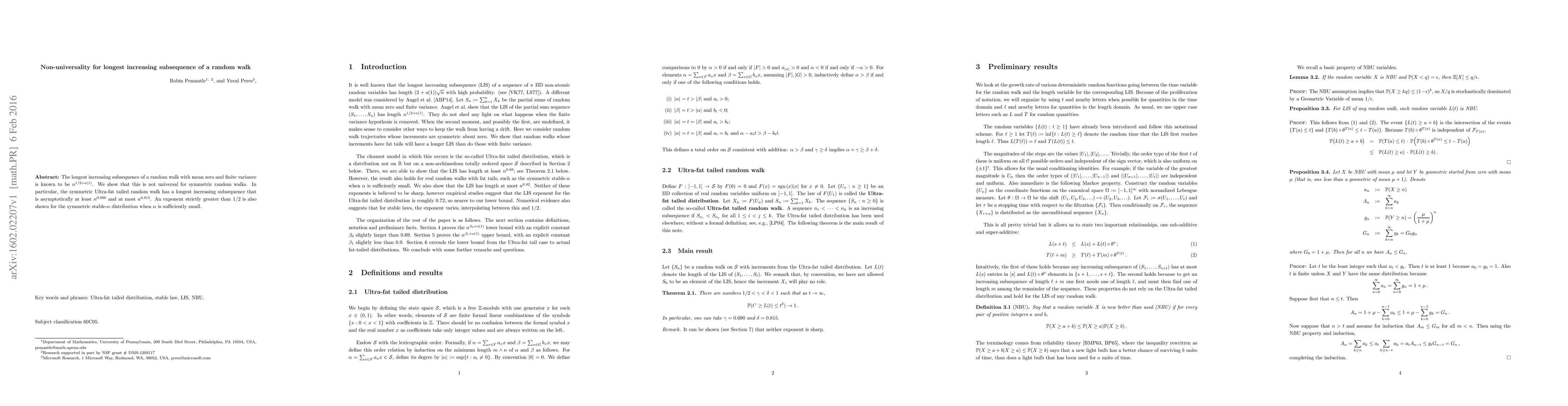 A new study shows that the longest increasing subsequence of a random walk does not follow the previously known $n^{1/2 + o(1)}$ rule for symmetric distributions, with exponents ranging from 0.690 to 0.815.