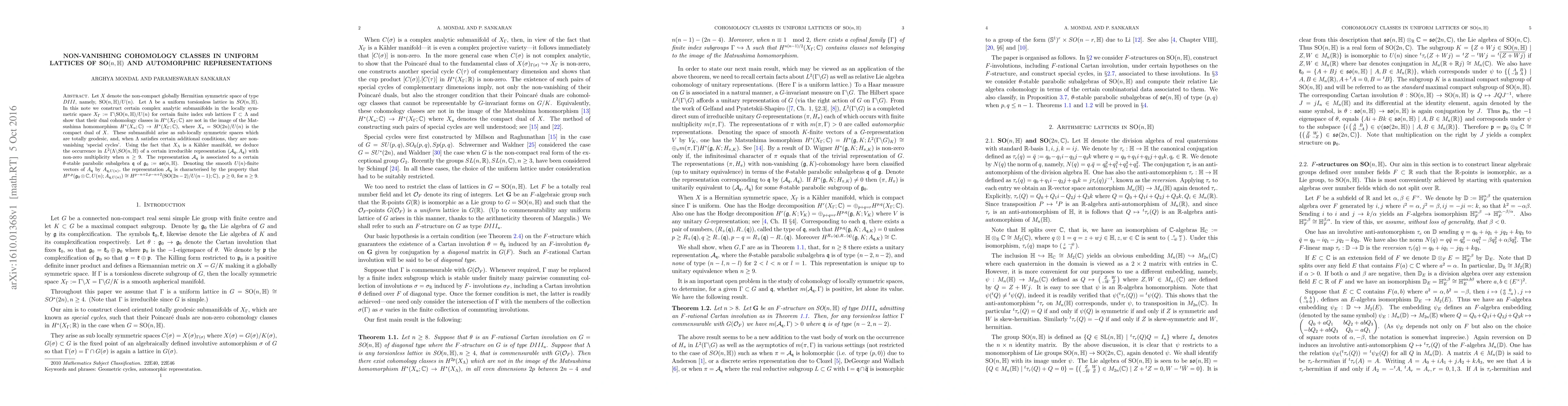 This paper constructs complex submanifolds in a locally symmetric space associated with a uniform lattice in $\text{SO}(n,\mathbb{H})$, demonstrating non-vanishing cohomology classes not arising from the compact dual. It also links these to automorphic representations with non-zero multiplicity in $L^2(\Lambda\backslash \text{SO}(n,\mathbb{H}))$ for $n \geq 9$.