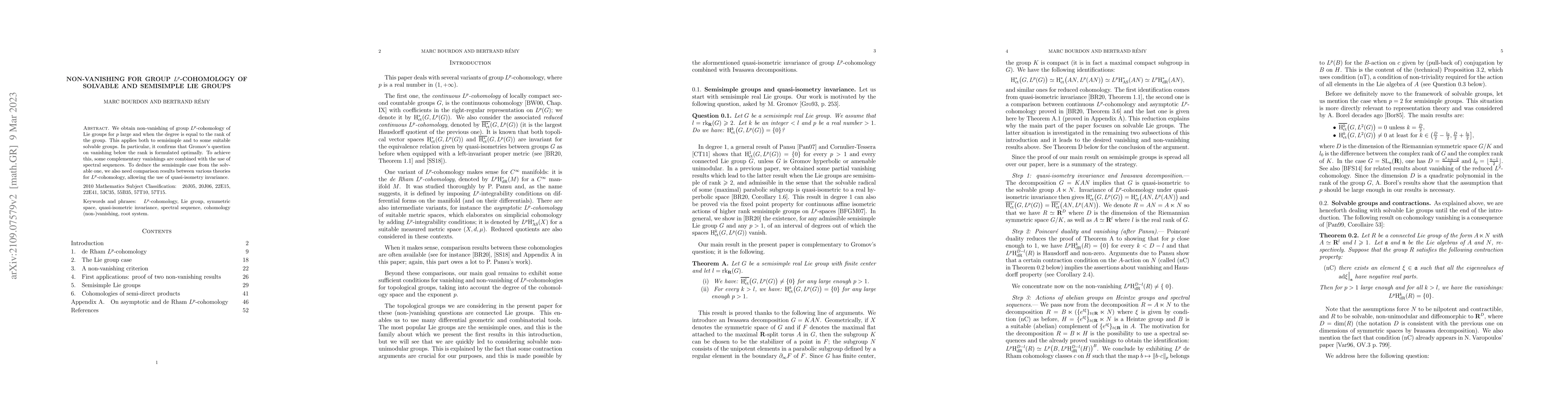 The research combines elements from group cohomology and spectral sequences to achieve a non-vanishing result for group Lp-cohomology, which is a significant advancement in the study of Lie groups' cohomological properties.