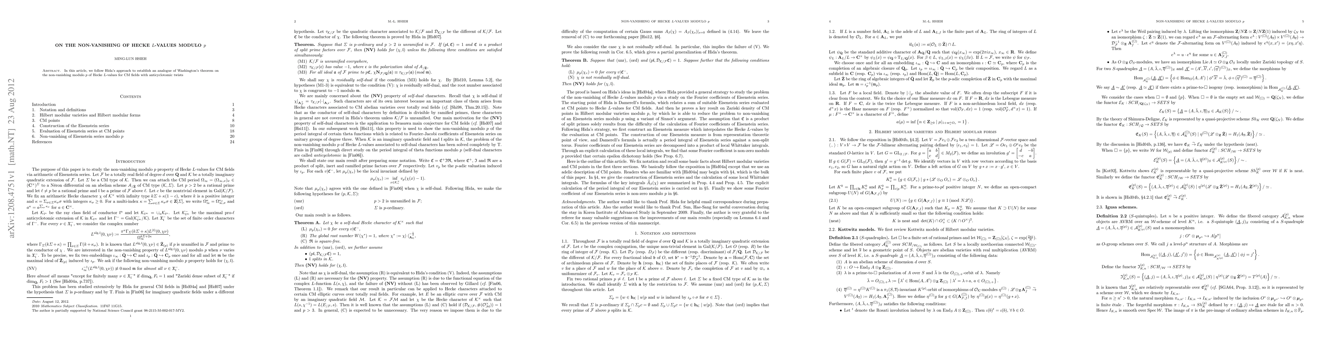 Summary: This paper utilizes Hida's method to prove an analogue of Washington's theorem, showing that Hecke L-values for CM fields do not vanish modulo p when twisted with anticyclotomic elements.