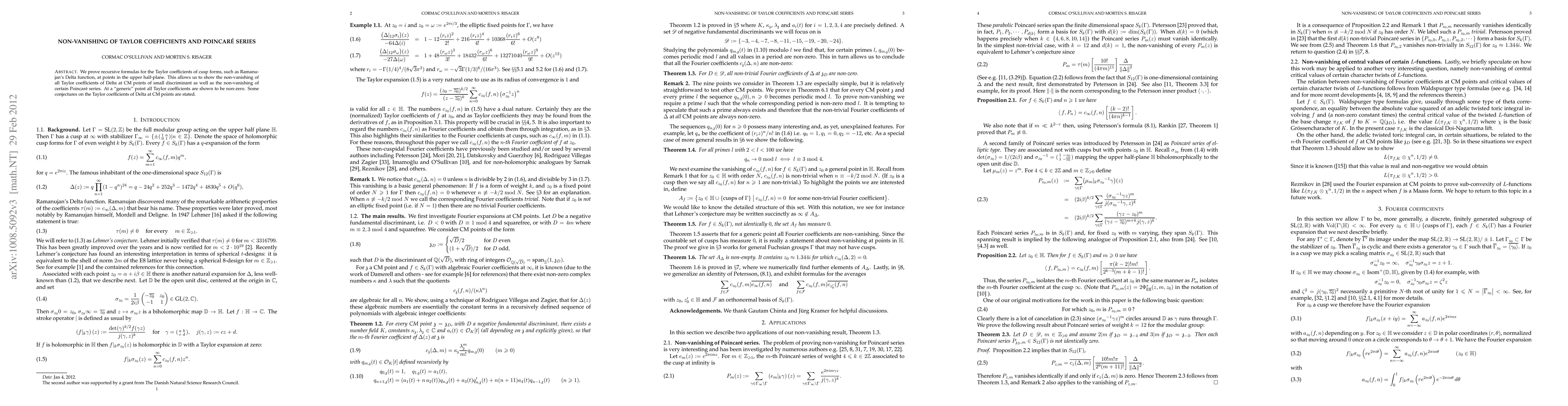 The paper proves recursive formulas for the Taylor coefficients of cusp forms, demonstrating the non-vanishing of these coefficients for Ramanujan's Delta function at CM points and generic points in the upper half-plane, along with certain Poincaré series. Conjectures regarding the behavior of these coefficients at CM points are also proposed.