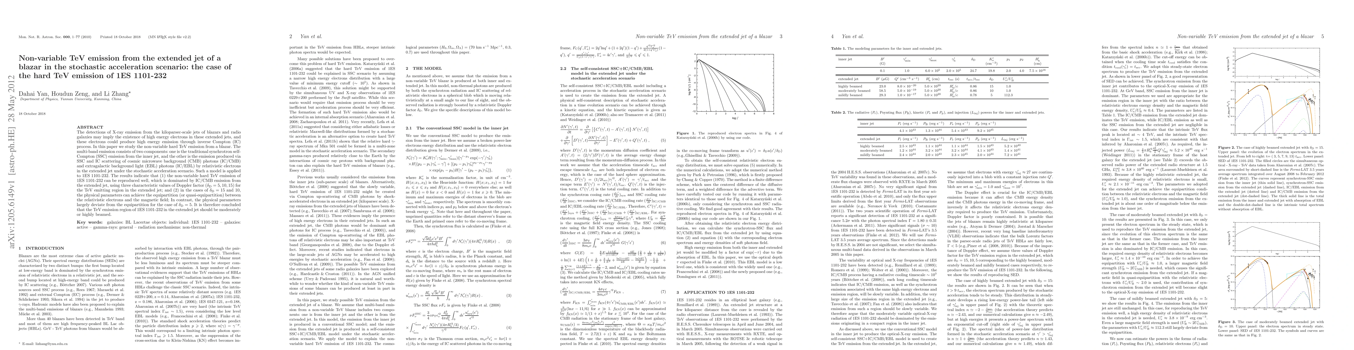 The detections of X-ray emission from the kiloparsec-scale jets of blazars and radio galaxies may imply the existence of high energy electrons in these extended jets, and these electrons could produce high energy emission through inverse Compton (IC) process. In this paper we study the non-variable hard TeV emission from a blazar. The multi-band emission consists of two components: one is the traditional synchrotron self-Compton (SSC) emission from the inner jet, and the other is the emission produced via SSC and IC scattering of cosmic microwave background (CMB) photons (IC/CMB) and extragalactic background light (EBL) photons (IC/EBL) by relativistic electrons in the extended jet under the stochastic acceleration scenario. Such a model is applied to 1ES 1101-232. The results indicate that (1) the non-variable hard TeV emission of 1ES 1101-232 can be reproduced well, which is dominated by IC/CMB emission from the extended jet, using three characteristic values of Doppler factor ($\delta_{\rm D}=5,10,15$) for the TeV emitting region in the extended jet; and (2) in the cases of $\delta_{\rm D}=15$ and 10, the physical parameters can achieve the equipartition (or quasi-equipartition) between the relativistic electrons and the magnetic field; In contrast, the physical parameters largely deviate from the equipartition for the case of $\delta_{\rm D}=5$. It is therefore concluded that the TeV emission region of 1ES 1101-232 in the extended jet should be moderately or highly beamed.