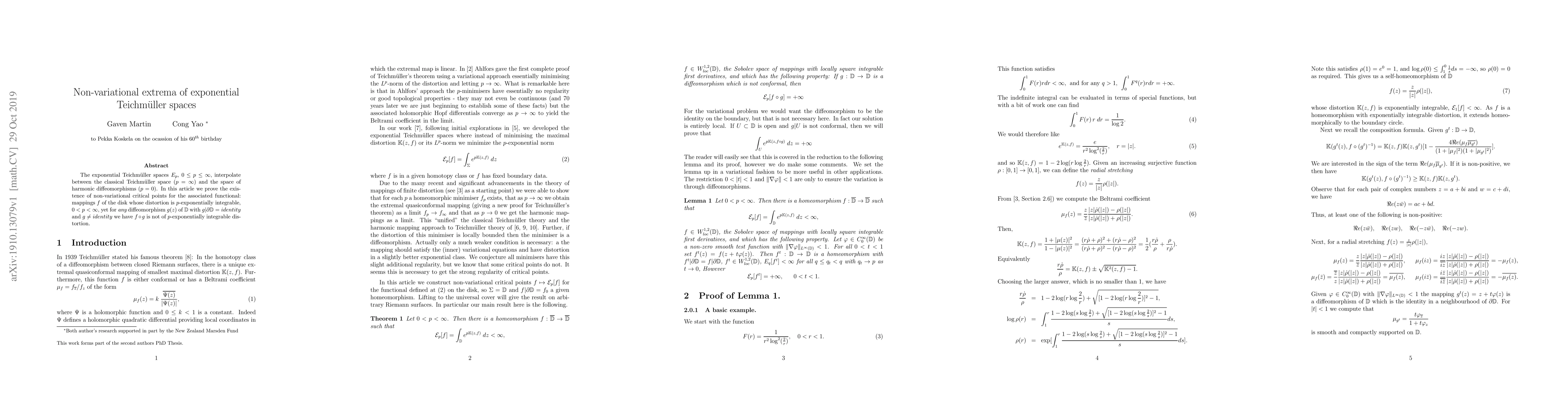 The exponential Teichm\"uller spaces $E_p$, $0\leq p \leq \infty$, interpolate between the classical Teichm\"uller space ($p=\infty$) and the space of harmonic diffeomorphisms $(p=0)$. In this article we prove the existence of non-variational critical points for the associated functional: mappings $f$ of the disk whose distortion is $p$-exponentially integrable, $0