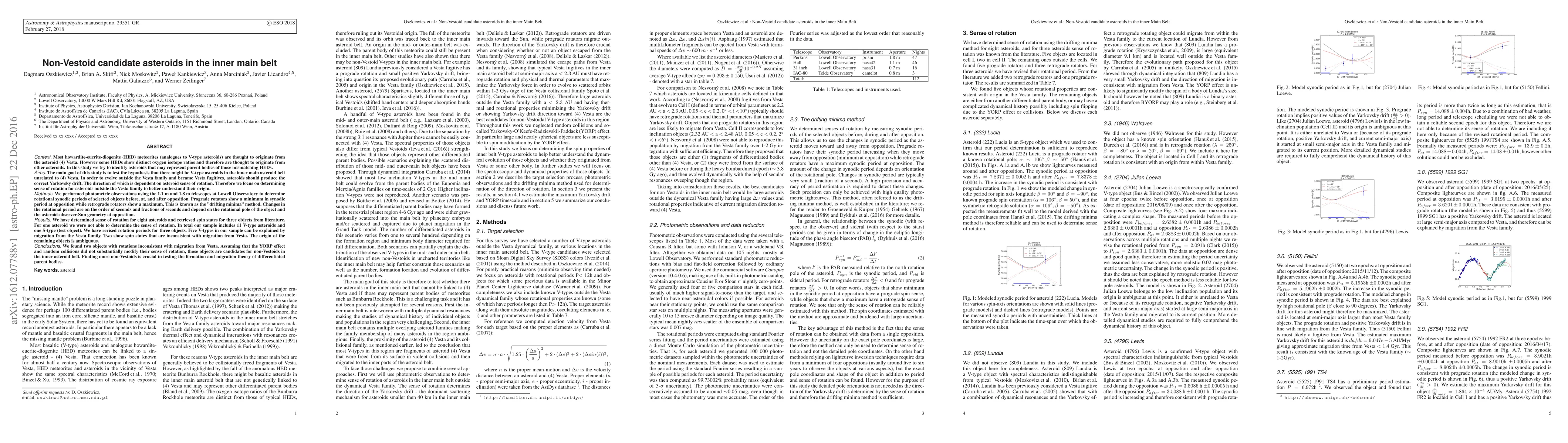 Most Howardite-Eucrite-Diogenite (HED) meteorites (analogs to V-type asteroids) are thought to originate from asteroid (4) Vesta. However, some HEDs show distinct oxygen isotope ratios and therefore are thought to originate from other asteroids. In this study, we try to identify asteroids that may represent parent bodies of those mismatching HEDs. In particular, the origin of the anomalous Bunburra Rockhole meteorite was traced back to the inner main asteroid belt, showing that there might be asteroids that are not genetically linked to the asteroid (4) Vesta (the main source of V-type asteroids and HED meteorites) in the inner main belt. In this work we identify V-type asteroids outside the dynamical Vesta family whose rotational properties (retrograde vs prograde rotation) suggest the direction of Yarkovsky drift that sets them apart from typical Vestoids and Vesta fugitives. Specifically Nesvorny et al. 2008 simulated escapes paths from the Vesta family and showed that typical Vesta fugitives in the inner main asteroid belt at semi-major axis a < 2.3 AU have to have retrograde rotations and physical and thermal parameters that maximize the Yarkovsky force in order to evolve to scattered orbits within 1-2 Gyrs (age of the Vesta collisional family). Therefore large asteroids outside the Vesta family and with a < 2.3 AU and having thermal and rotational properties minimizing the Yarkovsky drift or showing Yarkovsky drift direction towards (4) Vesta are the best candidates for non-Vestoids V-type asteroids and therefore parent bodies of anomalous HED. In this study, we have performed accurate photometric observations and determined sense of rotation for several asteroids testing their links to Vesta and anomalous HED. We have found several potential non-Vestoid candidates. Those objects have to be studied in more detail to fully confirm their link to anomalous HEDs.