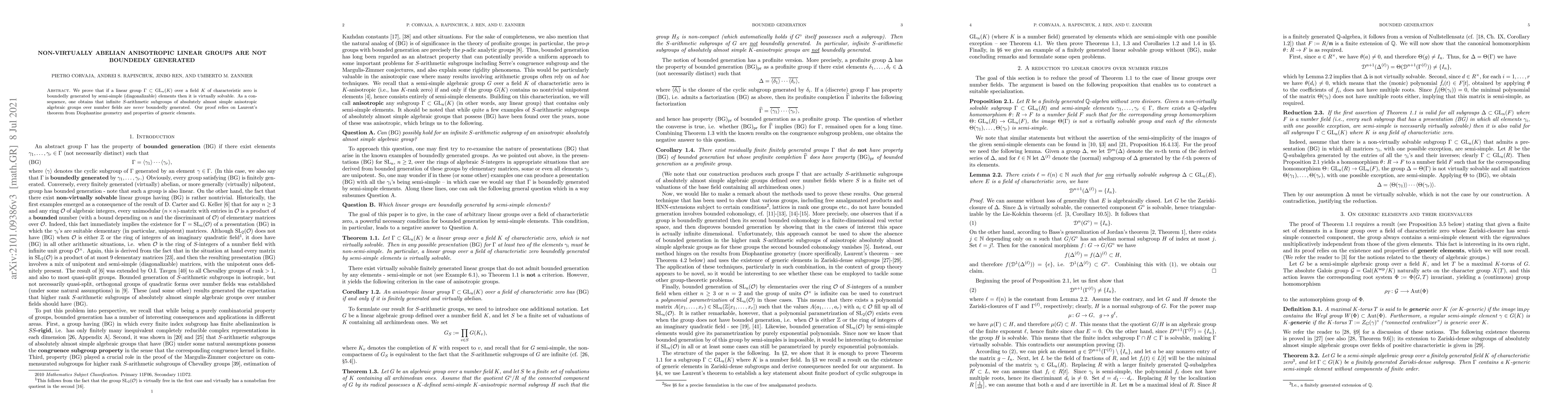 A linear group generated by semi-simple elements in a characteristic zero field is virtually solvable, implying certain subgroups of algebraic groups cannot be boundedly generated.