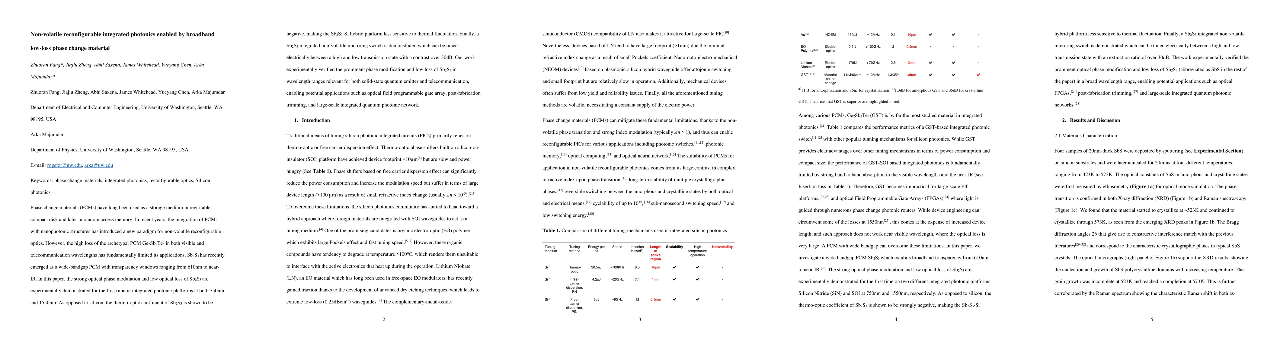 This paper demonstrates the integration of Sb2S3 phase change material into photonic platforms for non-volatile optical switching, showcasing low loss and effective phase modulation at 750nm and 1550nm, and highlighting potential applications in optical field programmable gate arrays and quantum photonic networks. The negative thermo-optic coefficient of Sb2S3 enhances the stability of Sb2S3-Si hybrid systems.