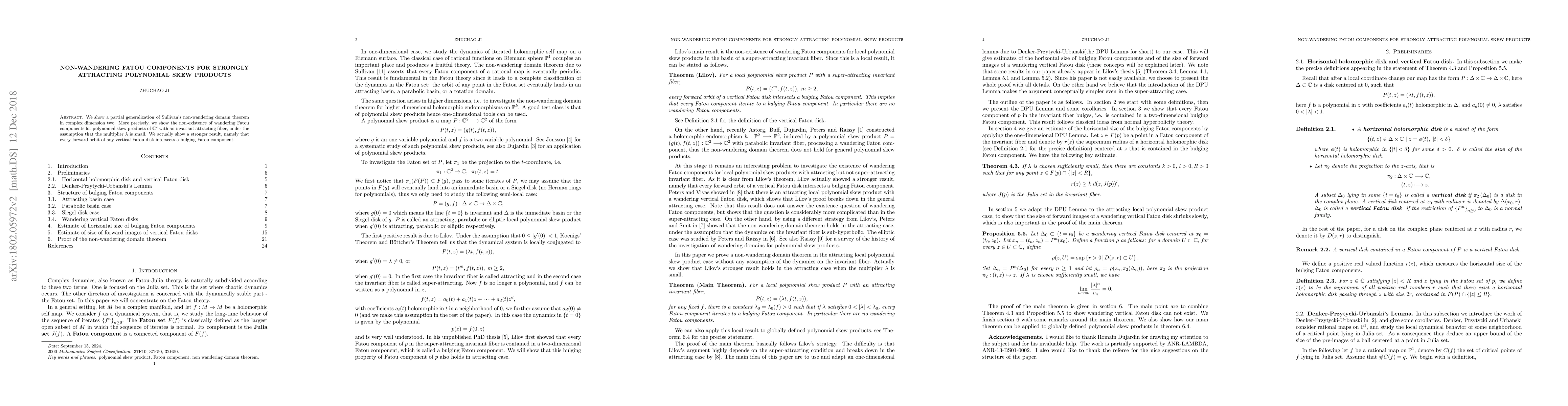 This paper generalizes Sullivan's non-wandering domain theorem for complex dimension two, demonstrating that polynomial skew products in $\mathbb{C}^2$ with small multipliers and invariant attracting fibers lack wandering Fatou components, with every vertical Fatou disk's forward orbit intersecting a bulging Fatou component.